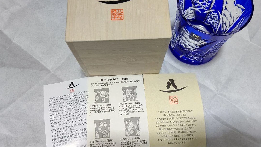Yachiyo Kiriko Handmade Glassware - Unique Japanese Art - Certified Edition Key Features **Yachiyo Kiriko Handmade Glassware** - **Brand Name:** Yachiyo Kiriko - **Product Type:** Handmade Glassware - **Material:** Red Crystal 24 PbO - **Capacity:** 280ml (approximately 9.5 oz) - **Dimensions:** Diameter approximately 3.35 inches (8.5 cm), Height approximately 3.62 inches (9.2 cm) - **Color:** Unique blend of colors with slight variations due to handmade nature - **Condition:** Gently used; opened only for photography. Please note that this item has been stored at home. If you are sensitive to minor imperfections, please consider this before purchasing. Experience the exquisite craftsmanship of Yachiyo Kiriko, a traditional glassware from Yachiyo City, Chiba Prefecture, Japan. This piece embodies a harmonious blend of skilled artistry and modern aesthetics, offering a fresh perspective on Japanese beauty. Specifications Brand Toyo Sasaki Glass Country Japan Product Description Item Title Yachiyo Kiriko Payment Supports managed payments Please pay within 5 days after auction is finished. About Us We are located in Japan. It's our pleasure to make you happy by proposing our recommend item. If you have any questions or request about items, please feel free to ask us. International Buyers - Please Note: -Import duties, taxes, and charges are not included in the item price or shipping charges. These charges are the buyer's responsibility. -Please check with your country's customs office to determine what these additional costs will be prior to bidding/buying. -These charges are normally collected by the delivering freight (shipping) company or when you pick the item up - do not confuse them for additional shipping charges. -We do not mark merchandise values below value or mark items as - gifts - The US and International government regulations prohibit such behavior. Thank you for your understanding.