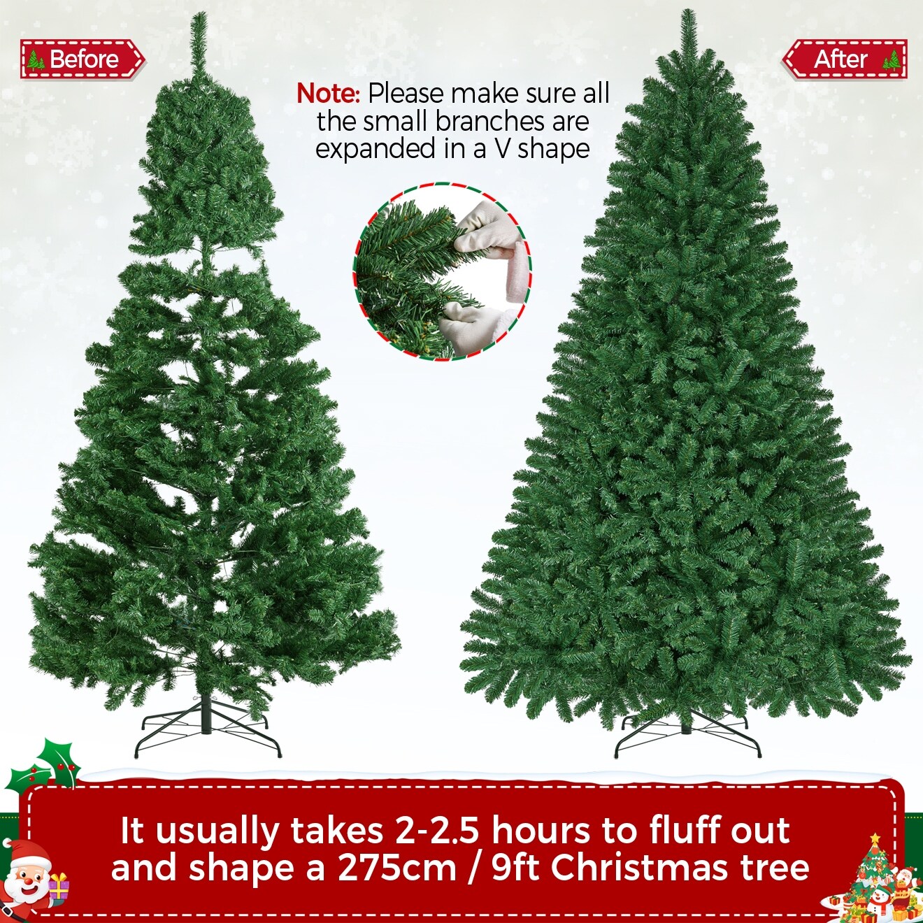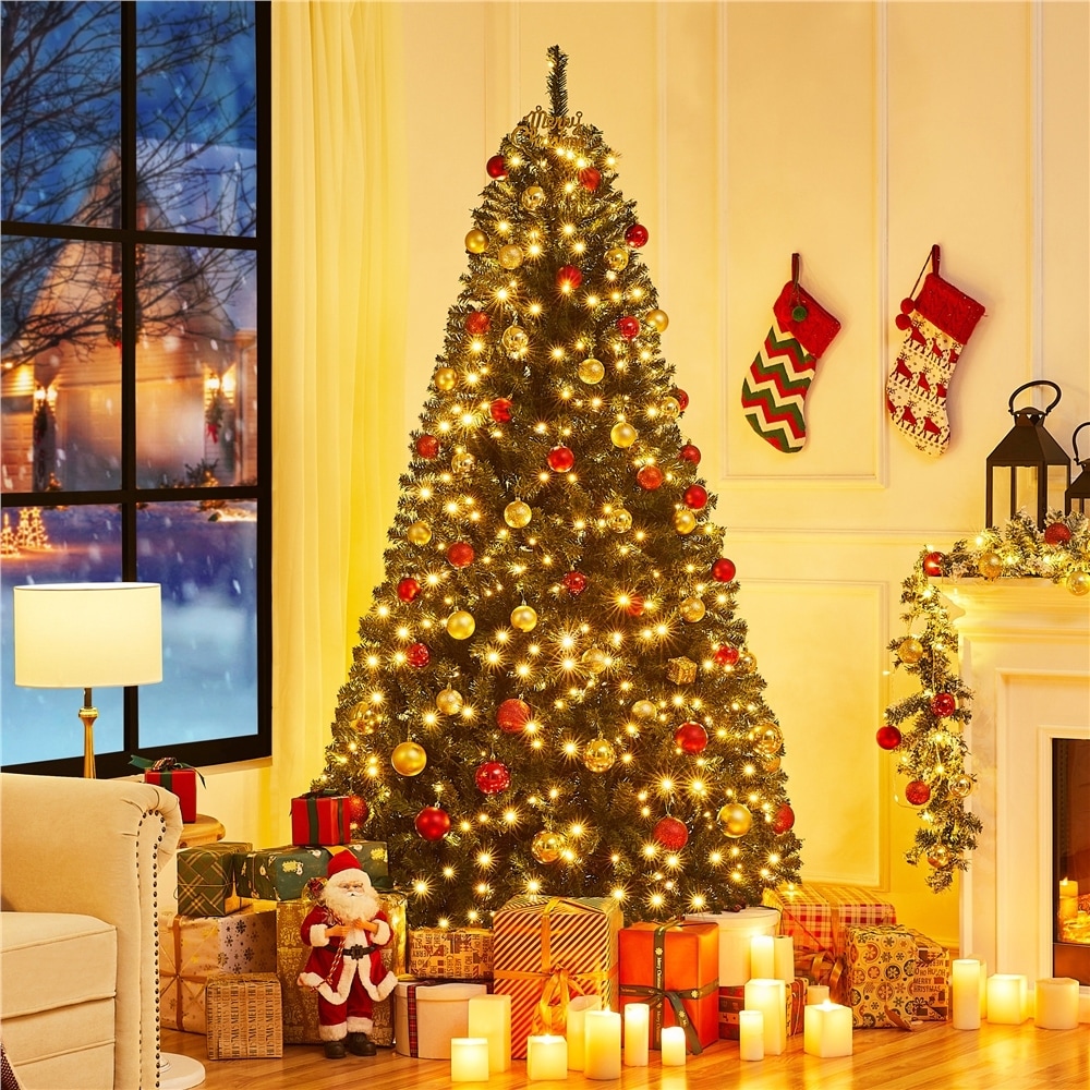 Thick and lush branches and tips give this tree a full-body look. Premium PVC leaves are flexible, durable, and bendable, and also leave your floor neat and clean. Colorful LED lights also make this faux spruce more festive and practical. Simple assembly is required since the tree is built in a hinged system and the lights are pre-set among the branch tips. We hope you can enjoy a sweet fun time decorating this full and fluffy tree with your family and beloved ones.Features: Durable Materials: This prelit artificial Christmas tree is made from strong PVC material with a sturdy metal plate base, which makes it fire-resistant and less likely to collapse. The trunk and stand are constructed of sturdy metal, ensuring a stable and balanced placement. Colorful LED Lights: This pre-lit Free Shipping Over $49.99* Details Yaheetech Pre-lit 4.5ft/6ft/7.5ft/9ft Spruce Artificial Christmas Tree with Product Description: Thick and lush branches and tips give this tree a full-body look. Premium PVC leaves are flexible, durable, and bendable, and also leave your floor neat and clean. Colorful LED lights also make this faux spruce more festive and practical. Simple assembly is required since the tree is built in a hinged system and the lights are pre-set among the branch tips. We hope you can enjoy a sweet fun time decorating this full and fluffy tree with your family and beloved ones. Features: Durable Materials: This prelit artificial Christmas tree is made from strong PVC material with a sturdy metal plate base, which makes it fire-resistant and less likely to collapse. The trunk and stand are constructed of sturdy metal, ensuring a stable and balanced placement. Colorful LED Lights: This pre-lit Christmas tree comes with lots of colorful and long-lasting LED lights already attached. No need to add any additional lights. These lights can switch between warm white and multi-colors with 9 flashing modes, and you can control them by simply touching a button. Versatile Our spruce artificial tree can be used either indoors or outdoors with warm lights on. You can place the tree in front of your house or the garden and let it shine at night. Simply place this artificial tree in your front yard or garden and let it illuminate the night throughout the festive season. Protective Rubber Pads: Each leg of the stand is equipped with a non-skid rubber sleeve to ensure the tree's stability. The rubber feet also protect the floor from scratches and damage caused by the hard metal stand. Flexible Tips: The leaves on our tree can be bent and set at will. After Connecting the tree body and the stand together, you are supposed to fluff out the tips to give a full look at your unique Christmas tree. All tips are bendable and can be set in a certain direction, just lifting the top tips and pulling out the side tips. Manual Included: We provide all matching accessories and a detailed manual for your convenience. You may follow the instructions for assembly. It is suggested to wear gloves while setting up and fluffing out. Just like real spruce, the needles can be a bit scratchy. Specification: ColorGreen MaterialsPVC, Powder-coated Steel TypePre-lit Artificial Christmas Fir Tree 4.5ft: Total Tip Count324 Total Light Count150 Light ToneMulticolor Assembled Dimensions29 Dia. × 54 H Stand Dimensions15.7 Dia. × 5.3 H 6ft: Total Tip Count818 Total Light Count300 Light ToneMulticolor Assembled Dimensions42.5 Dia. × 72 H Stand Dimensions19.7 Dia. × 5.5 H 7.5ft: Total Tip Count1354 Total Light Count550 Light ToneMulticolor Assembled Dimensions52 Dia. × 90 H Stand Dimensions22 Dia. × 6.7 H 9ft: Total Tip Count2160 Total Light Count850 Light ToneMulticolor Assembled Dimensions59 Dia. × 108.5 H Note: Please allow for a margin of error in measurements due to the bendable tips. It is a Christmas tree with no decoration except for the pre-fixed lights and branch tips.