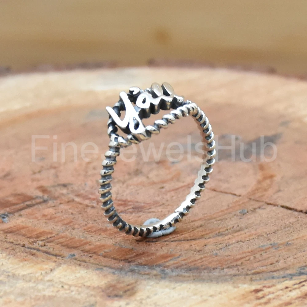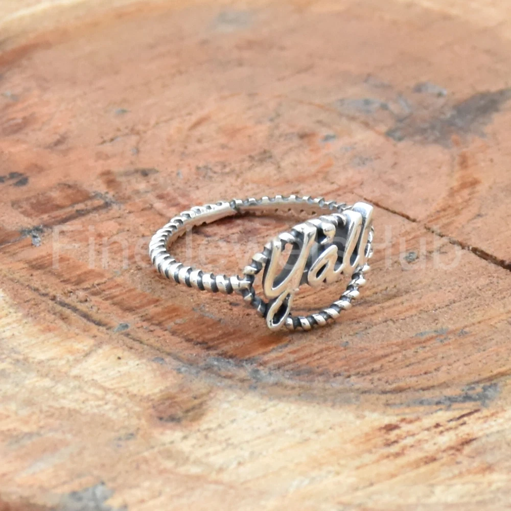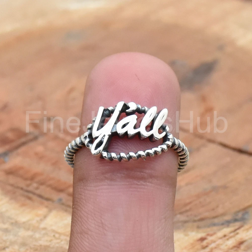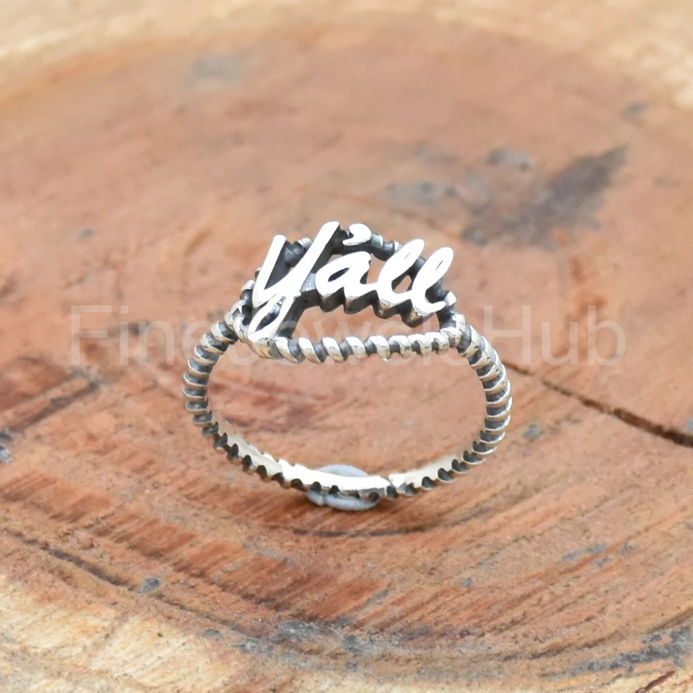Y'all Rope Ring, 925 Sterling Silver Ring, Letters Ring, Twisted Band Ring,