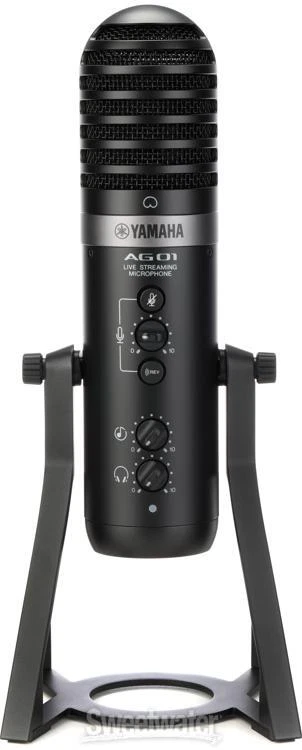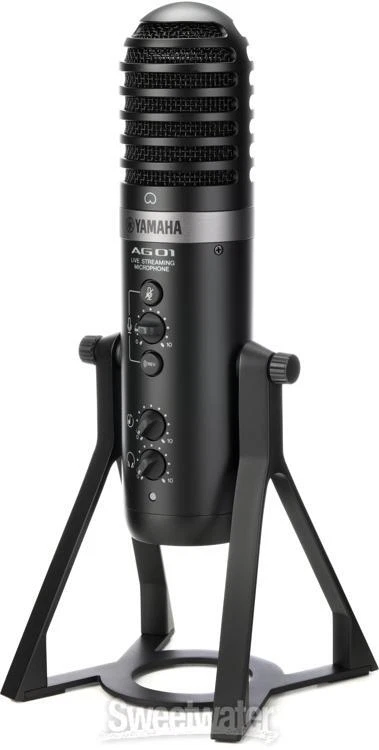 Full Streaming Suite — All from Your Mic With their AG series 3- and 6-channel mixers and USB interfaces, Yamaha has carved their own impressive niche in the realm of livestreaming. Now, they’ve unleashed the AG01 USB condenser microphone, a full suite of streaming options drawing directly from the capabilities of the AG series — all placed in one convenient spot. If you’re looking for a streamlined setup, then you only need to connect your headphones and a computer or an iOS/Android device, and you’re all set to stream. Of course, a host of onboard options grant you full control over your stream, including built-in DSP effects, a loopback function, a mixer, and additional input options. Additionally, you can pair your output with supplementary audio, all at stunning 24-bit/192kHz resolution.Loopback functionality for all-in-one streaming At Sweetwater, we understand that you are the most important part of your stream. Yamaha’s AG01 Sweetwater is an Authorized Yamaha Dealer Genuine New Item Sweetwater's 2-year warranty Yamaha AG01 Livestreaming USB Condenser Microphone - Black USB Condenser Microphone with Onboard DSP, Mixer, Loopback, and Flexible Input Connectivity - Black Full Streaming Suite — All from Your Mic With their AG series 3- and 6-channel mixers and USB interfaces, Yamaha has carved their own impressive niche in the realm of livestreaming. Now, they’ve unleashed the AG01 USB condenser microphone, a full suite of streaming options drawing directly from the capabilities of the AG series — all placed in one convenient spot. If you’re looking for a streamlined setup, then you only need to connect your headphones and a computer or an iOS/Android device, and you’re all set to stream. Of course, a host of onboard options grant you full control over your stream, including built-in DSP effects, a loopback function, a mixer, and additional input options. Additionally, you can pair your output with supplementary audio, all at stunning 24-bit/192kHz resolution. Loopback functionality for all-in-one streaming At Sweetwater, we understand that you are the most important part of your stream. Yamaha’s AG01 condenser microphone is the ideal all-in-one streaming solution that saves you the stress of a complicated setup, thanks to its built-in loopback function. This allows you to incorporate external audio sources — via USB or one of the 1/8-inch, 4-pole mini jacks — alongside whatever is being picked up by your microphone, all into one stream. Loopback can be easily toggled and adjusted directly from the microphone, whether it’s music from your laptop/PC, mobile device, or even another mic. Onboard DSP lets your voice be heard, your way Streaming has become a ubiquitous activity, and it's more important than ever to strive for pro-level audio. The AG01 offers zero-latency DSP effects, including onboard compression, EQ, reverb, mute, and mic gain functionality. Because the AG01 is class compliant for iOS use, you can take even greater control of your audio arrangement. This is due to the AG DSP Controller app, which features “1 touch” and “expert” modes — both provide varying degrees of fine-tuning capabilities for all the onboard DSP effects. Furthermore, these can be applied to any supplementary audio, thanks to the AG01’s flexible input connectivity, sending out your stream at high-resolution, industry-standard 24-bit/192kHz quality. Yamaha AG01 Livestreaming USB Condenser Mic Features: Self-contained design lets you stream with a full suite of options right out of the box, with nothing more than a set of headphones and an Internet-connected computer or mobile device Condenser microphone ensures high-resolution audio at 24-bit/192kHz Built-in mixer keeps control close by and easily accessible USB connectivity means simple, immediate streaming with any laptop, PC, or iOS/Android device Zero-latency DSP effects provide quick, flexible control of compression, EQ, reverb, mute, and mic gain iOS class compliance grants even greater fine-tuning of DSP effects, thanks to the AG DSP Controller app Loopback functionality allows for full control and incorporation of supplementary audio, alongside microphone input Varied inputs include 1/8-inch, 4-pole mini jacks and USB, permitting additional audio from a computer, mobile device, or even another microphone Specification Detail Microphone Type Back Electret Condenser Polar Pattern Cardioid Frequency Response 30Hz-20kHz A/D Resolution 24-bit/192kHz Max SPL 110dB SPL Sensitivity -34dB ±3dB Color Black Features Mute Button, Loopback Function Connector 2 x USB-C (host, 5V power), 1 x 1/8" TRRS (in/out), 1 x 1/8" (aux), 1 x 1/8" (headphones) Software AG Controller, Cubase AI, WaveLab Cast, Cubasis LE, Rec'n'Share Power Source USB bus powered / 5V USB power adapter (sold separately) Dimensions 11.1" x 4.6" Weight 2.6 lbs. Included Accessories USB Cable RETURN INFORMATION We want you to be completely happy with your purchase from Sweetwater. If you are not satisfied with your product, you may return it for a refund of the purchase price within 30 days. If your purchase was eligible for Free Shipping, the shipping cost will be deducted from your credit or refund. Returns must be in the complete and original packaging with all accessories and complete documentation (Owner's Manual, warranty card, quick start guides, etc.), show no signs of wear or use, and include a Return Authorization number or be subject to a restocking fee.