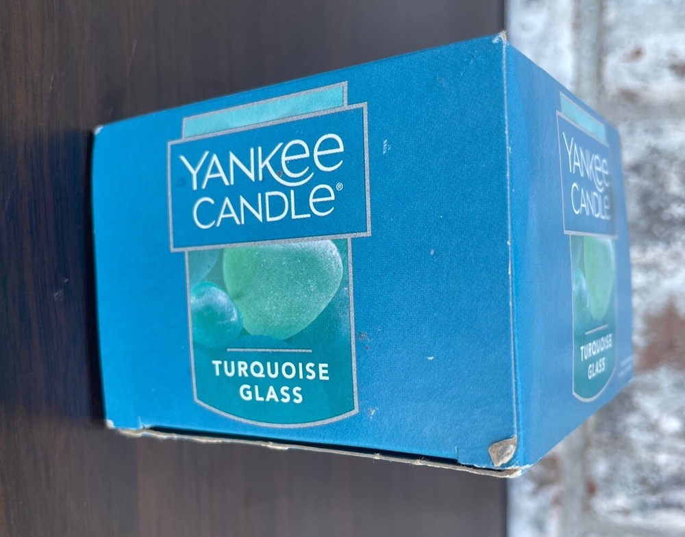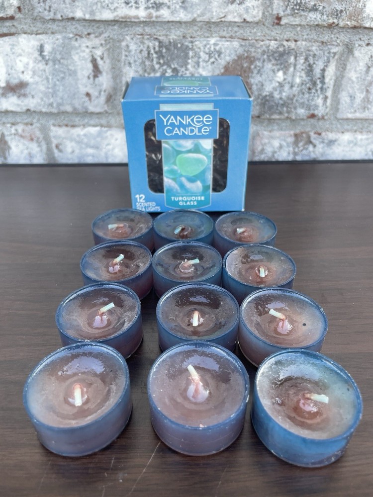 Yankee Candle 12 Scented Tea Lights ~Turquoise Glass~New Old Stock Open Box. Shipped with USPS Ground Advantage for 6.00.