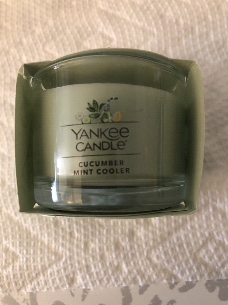 Attention all Yankee Candle lovers on a budget, this candle is for you. It is a mini Yankee Candle (1.3 oz.) in the delightful fragrance of Cucumber Mint Cooler. This candle is brand new and is in its original packaging. It is ready to add a beautiful relaxing fragrance to any room. This candle comes from a smoke-free, pet-free home and I usually ship within 24 hours of payment. I also send a personal email verifying the shipping date and provide a tracking number. Please email with all questions. Thank you for viewing my item; enjoy your day.