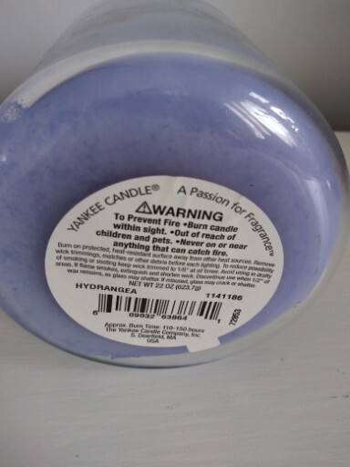 Size:LargeStyle:TraditionalType:Scented CandleTheme:Floral & GardenPower Source:CandleShape:JarCountry/Region of Manufacture:United StatesModel:Yankee Candle Co HydrengaMaterial:WaxBrand:Yankee CandleScent:FloralColor:PurpleNumber in Pack:1Features:Scented