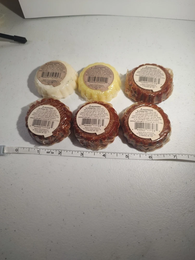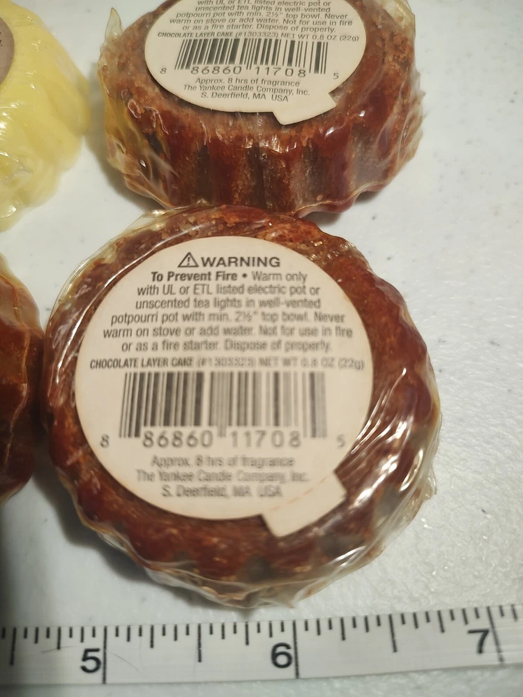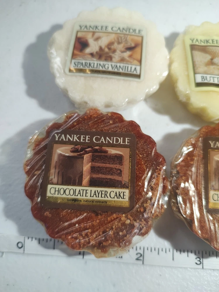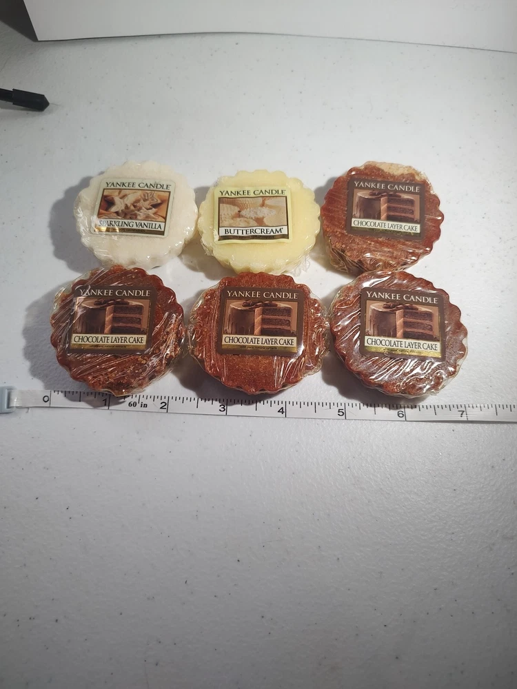 Yankee Candle lot of 6 wax tarts/melts. They have never been used and still are in the original packaging. The fragrances are: 4 Chocolate Layer Cake, 1 Sparkling Vanilla and 1 Buttercream. Please check out my other listings. I will combine shipping whenever possible. From my clean, smoke free home.