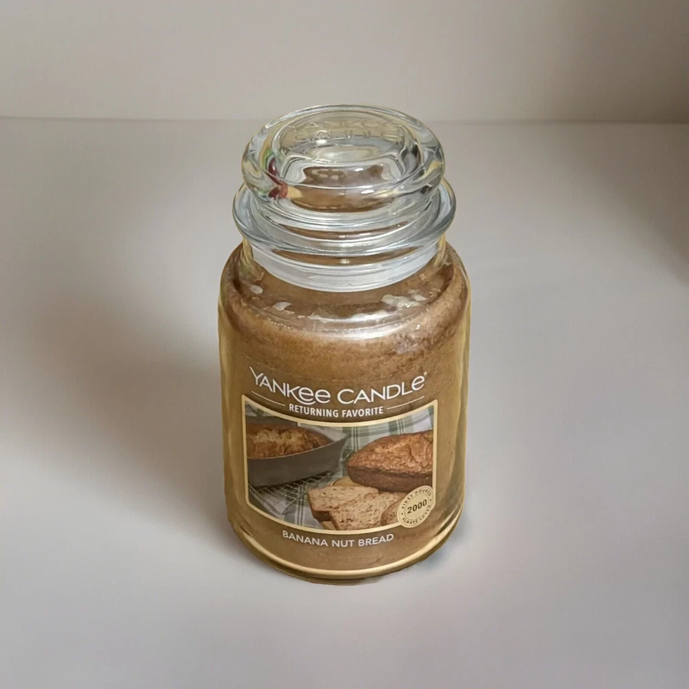 The Yankee Candle Banana Nut Bread jar candle is a large, 22 oz container candle perfect for creating a cozy autumn ambiance in any room. With a traditional style and a scent reminiscent of freshly baked banana nut bread, this candle is a returning favorite that brings the warm and inviting aroma of walnuts and baked goods into your home. Made of wax and featuring a single wick, this Yankee Candle product has a burning time of approximately 110-150 hours, making it ideal for long-lasting enjoyment during the fall season.