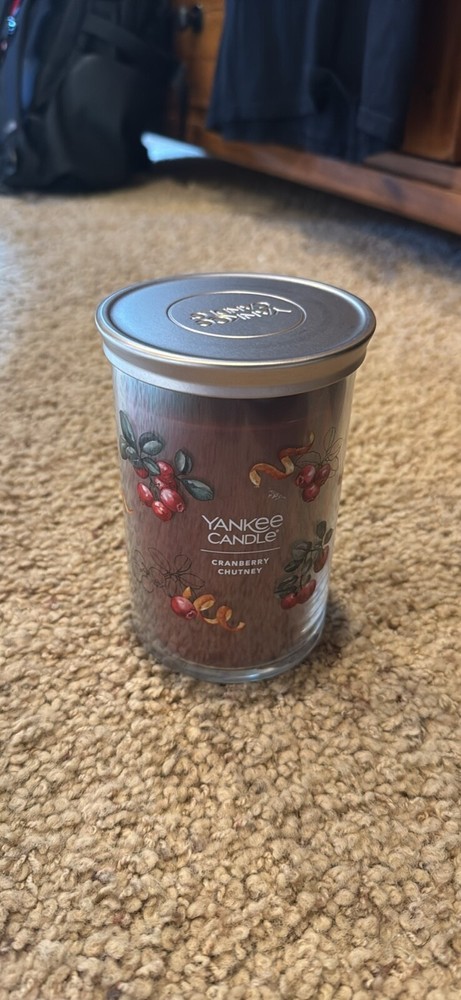 Experience the warm and inviting aroma of Yankee Candle's Cranberry Chutney in a convenient 22 oz jar with two wicks. This popular scent brings the festive spirit of the holidays and seasonal celebrations into your living room or any space that needs a touch of comfort and cheer. The rich, red wax is crafted to fill your room with a delightful, cranberry fragrance that is both exotic and familiar.Proudly made in the United States, this jar/container candle is a true Yankee classic. The scent is not personalized or customized, ensuring that you get the authentic Yankee Candle experience every time. Enjoy the reliable, long-lasting fragrance that comes in a beautiful red glass jar, making it a perfect gift or a charming addition to your own candle collection.