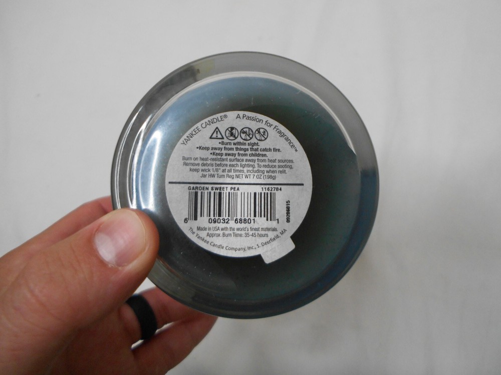 Enhance the ambiance of any room with this beautiful Yankee Candle Garden Sweet Pea Medium Jar Candle. The candle is made of high-quality paraffin wax that burns evenly and emits a delightful sweet pea scent. The blue-colored jar is designed in the shape of a garden sweet pea flower and is perfect for any nature-themed decor. This traditional style candle is a rare find with a white label and is sure to be a great addition to your candle collection. The 7 oz. candle is made in the United States and is perfect for any room in your home. Get your hands on this hard-to-find candle today!