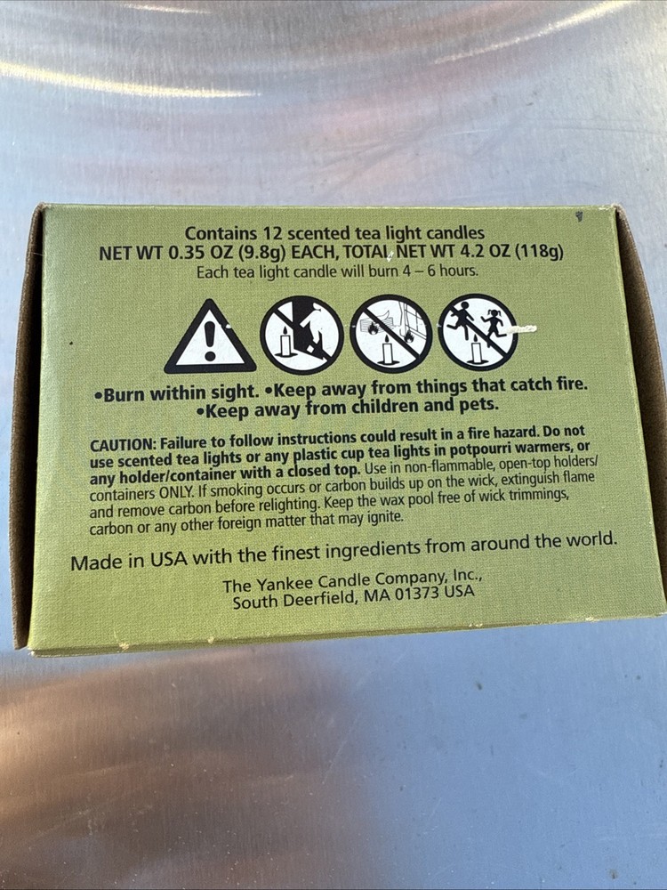Brand: Yankee Candle Features: Scented Material: Wax Number in Pack: 1 Shape: Tealight Color: Green Type: SCENTED TEA LIGHT Scent: HOLIDAY BAYBERRY