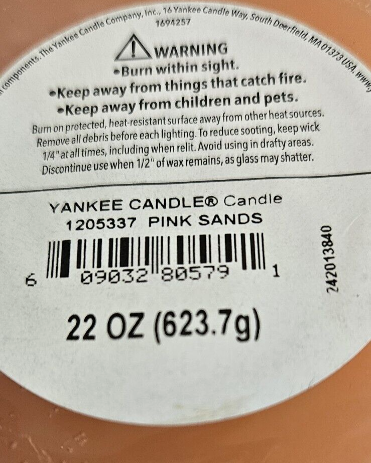 Yankee Candle Pink Sands Scented, Single Wick Candle 22oz Large Jar