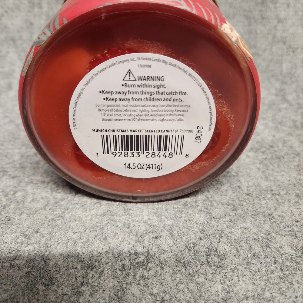 Room: Any room Type: Jar/Container Candle Country/Region of Manufacture: United States Brand: Yankee Candle gtin13: 192833284488 Item Width: 4 in Shape: Jar Theme: Christmas, Family & Friends, Fall Winter, Festive Scent: Munich Christmas Market 14.5 oz Personalize: No Features: Scented Style: Traditional Color: Red Model: Munich Christmas Market 14.5 oz UPC: 192833284488