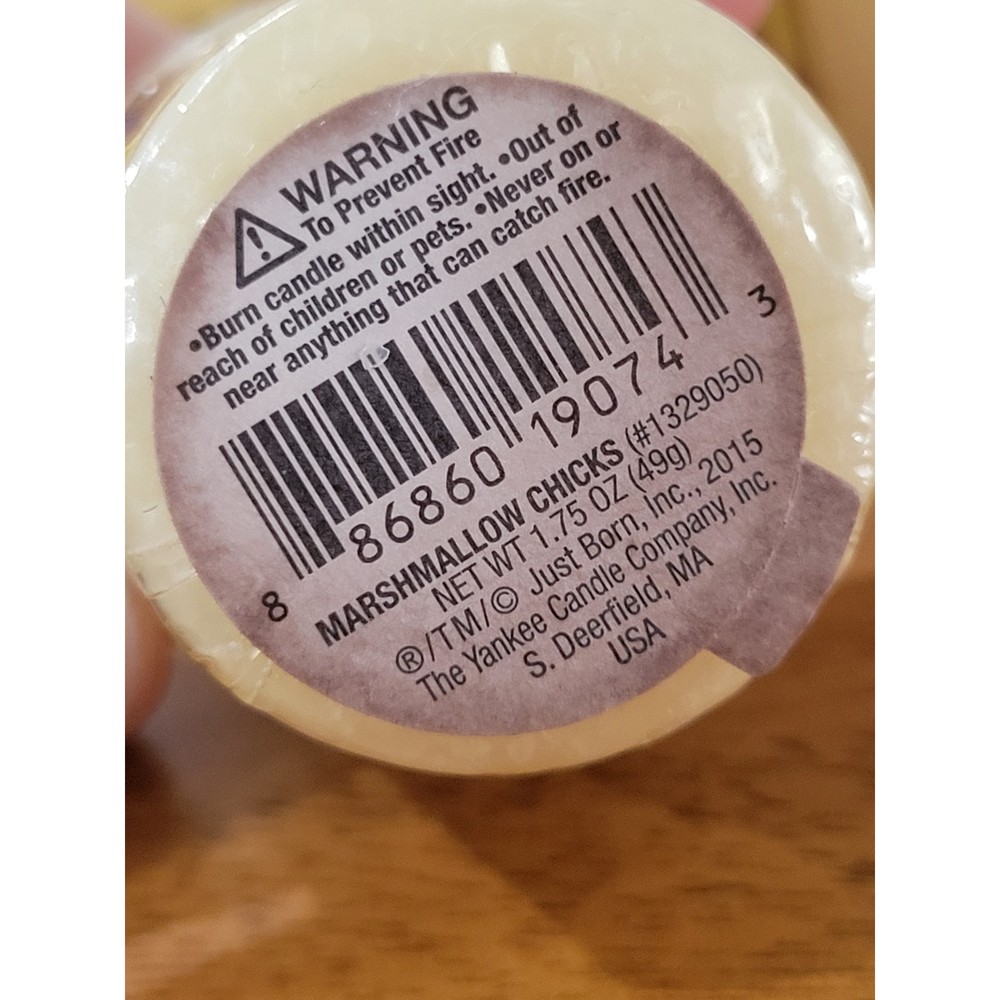 Scent: Marshmallow Chicks Color: Yellow Type: Votive Candle Number in Pack: 6 Brand: Yankee Candle Theme: Easter, Seasonal, candy