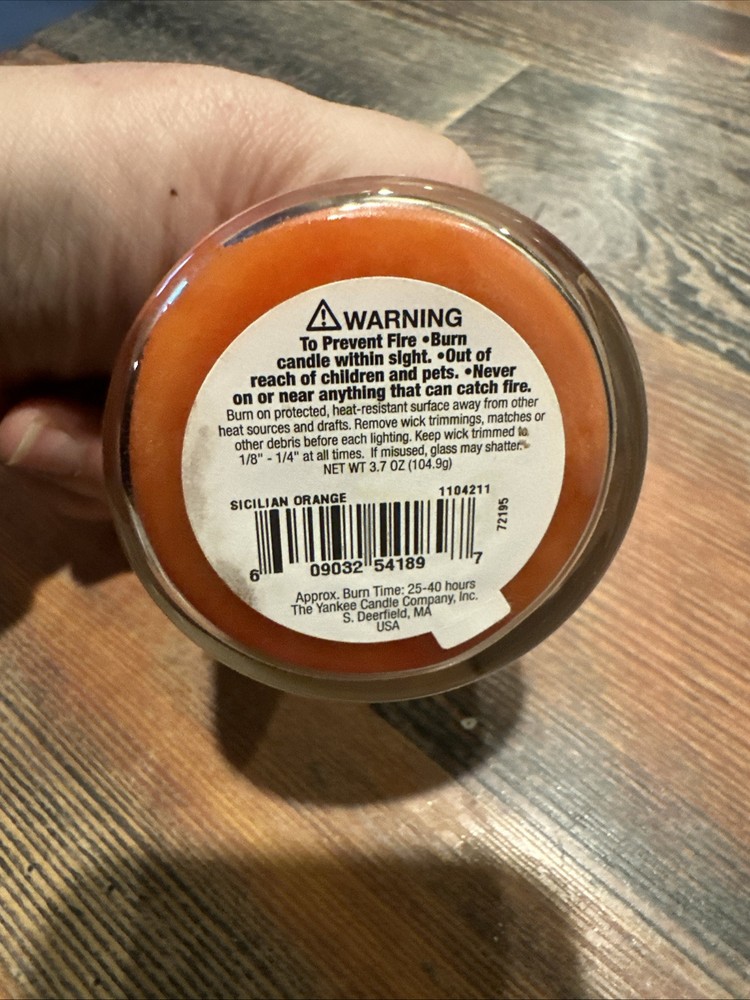 Item Weight: 3.7 Style: Traditional Burning Time: More Than 5 hrs UPC: Does not apply Scent: Orange Type: Jar/Container Candle Theme: Nature Customized: No Color: Orange Features: Scented, Single Wick gtin13: Does not apply Material: Wax Country/Region of Manufacture: United States Shape: Jar Brand: Yankee Candle Item Width: 4 in Item Length: 3.5 in Item Height: 4 in Room: Bathroom, Bedroom, Dining Room Size: Mini