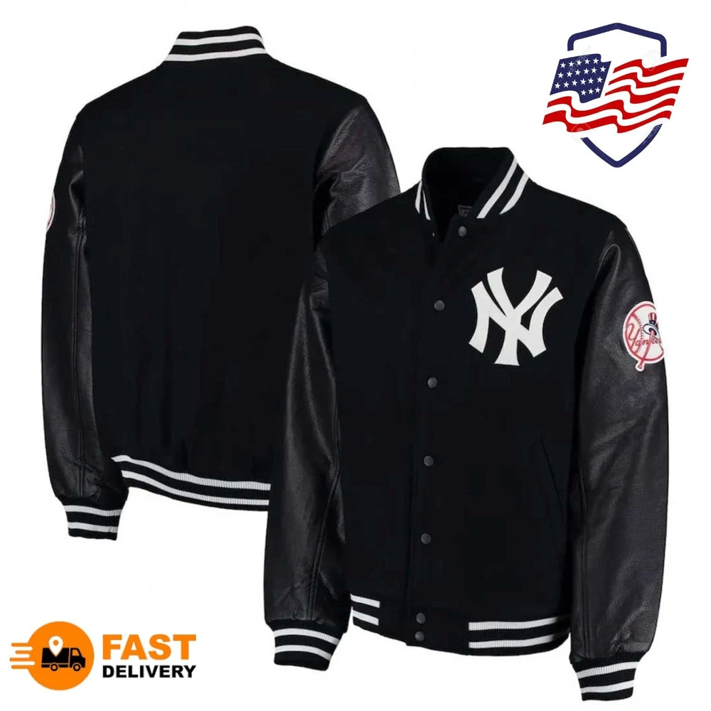 Step back in time with this iconic Yankees NY MLB 90s Vintage Bomber Jacket. Crafted with premium black leather, this varsity jacket embodies timeless athletic style and superior quality. Designed for fans and fashion enthusiasts alike, it features a classic bomber silhouette, sturdy construction, and an eye catching Yankees logo that showcases your team spirit. Perfect for chilly days or adding a vintage touch to your wardrobe, this jacket is a must have for collectors and sports lovers. Don't miss out on owning a piece of history grab this Yankees varsity jacket today Specifications Classic NY New York Yankees Varsity Jacket Material: Quality Wool & Genuine Leather Sleeves Closure: Front Snap Buttons Closure Interior: Quality Viscose Inner Lining Logo: MLB NY Yankees Embroidery Logos Pockets: Two Side Waist Pockets & 1 Inner Pocket Collar, Cuff, Hemline: (Rib Knitted) Quality Stitching THIS JACKET IS NOT OFFICILAY LICENSED Global Excellence in Jacket Manufacturing: We manufacture and sell all around the globe with the help of our specialized team members. We design and manufacture standard and customized requirements to satisfy the needs of our clients. Our jackets are very stylish, well-stitched and trendy to the core. Expert-Crafted Quality: Every Product, a Masterpiece: We know that our responsibility extends beyond your wardrobe so we have been trying our hardest to live by our values and ethics. We value our customers the most and that's the reason that each product that we create passes through the hands of experts for detailed quality assurance before it is finally dispatched to the buyers. We are working in accordance with the best shipping companies over the globe so as to provide timely delivery of goods. We believe in working together so as to provide the best value for money products. There might be slight variation in the color due to different monitor resolution. PLEASE NOTE: We recommend you to check the size chart before order. Shipping Policy: Handling Time 5 working days. Shipping Time 2 to 8 working days. Tracking number will be provided after shipment. FEEDBACK:- We believe in 100% customer satisfaction. Please do leave your "POSITIVE FEEDBACK & 5 STAR RATING" in all categories. CONTACT US:- In case you face any problem with the item received, size or material of item CONTACT us immediately by mail or eBay message & we would definitely resolve the issue as leaving the negative feedback would not resolve the issue. Returns Policy: Returns are accepted within 30 working days of receiving the item in genuine condition.