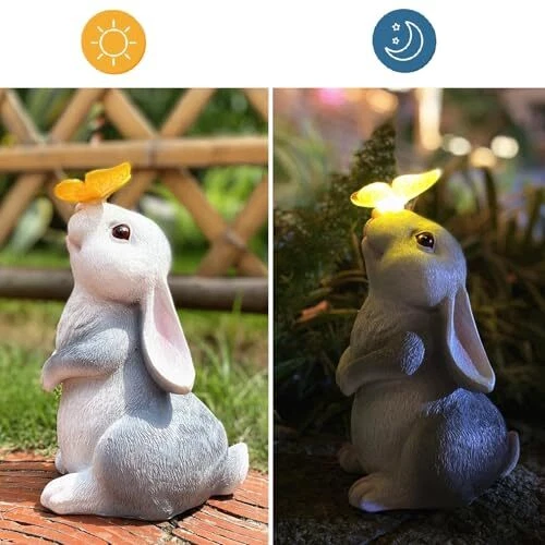 Menu 1. We require immediate payment. 2. We currently accept payment via eBay managed payments only. 3. Once payment is cleared, we will dispatch your shipment within 1-3 business days. Please refer to the "Shipping" tab for more information regarding shipping speed to your destination. Yard Decorations Outdoor Statues: Solar Bunny Garden Decor for Outside, Rabbit with Butterfly Patio Sculptures Lawn Ornament, Funny Gifts for Women Mom Grandma Birthday Product description 【Lovely Bunny Statue】This bunny sculpture is about the size of a real rabbit 9.5" height. Retro appearance, deep eyes, realistic feathers, and a glowing butterfly on its nose make this rabbit look lifelike, full of vitality and energy. It can attract people's attention easily, when you place it on patio, porch, yard, flower bed, front door. 【Great and Unique Gift】The bunny decor yard decorations is an adorable gift for mom, grandmy, women, sister, daughter, family, friends, and neighbors. It is the perfect gift for any holidays, Easter, Halloween, Christmas, Thanksgiving, birthday, Mother's Day, or housewarming. 【Clean energy】A solar panel is installed on the back of the rabbit figurine. Pressing the "ON" switch will automatically absorb solar energy during the day and automatically illuminate at night. Whether day or night, it can bring a different decorative effect to your garden. 【Waterproof & anti-fading】This solar garden rabbit decor is made of high quality resin with hand maded, which will not fade even if expose to sun or rain. 【Adorable decor to the House】This lifelike and cute rabbit outdoor statue can be decorated in gardens, hallways, balconies, lawns, flowers, and any place you want to decorate. It can make your home look more vibrant and lovely. PLEASE MESSAGE US IF YOU HAVE ANY OTHER QUESTIONS, AND MANY THANKS FOR READING ALL OF THIS. Copyright ©#. All Rights Reserved.