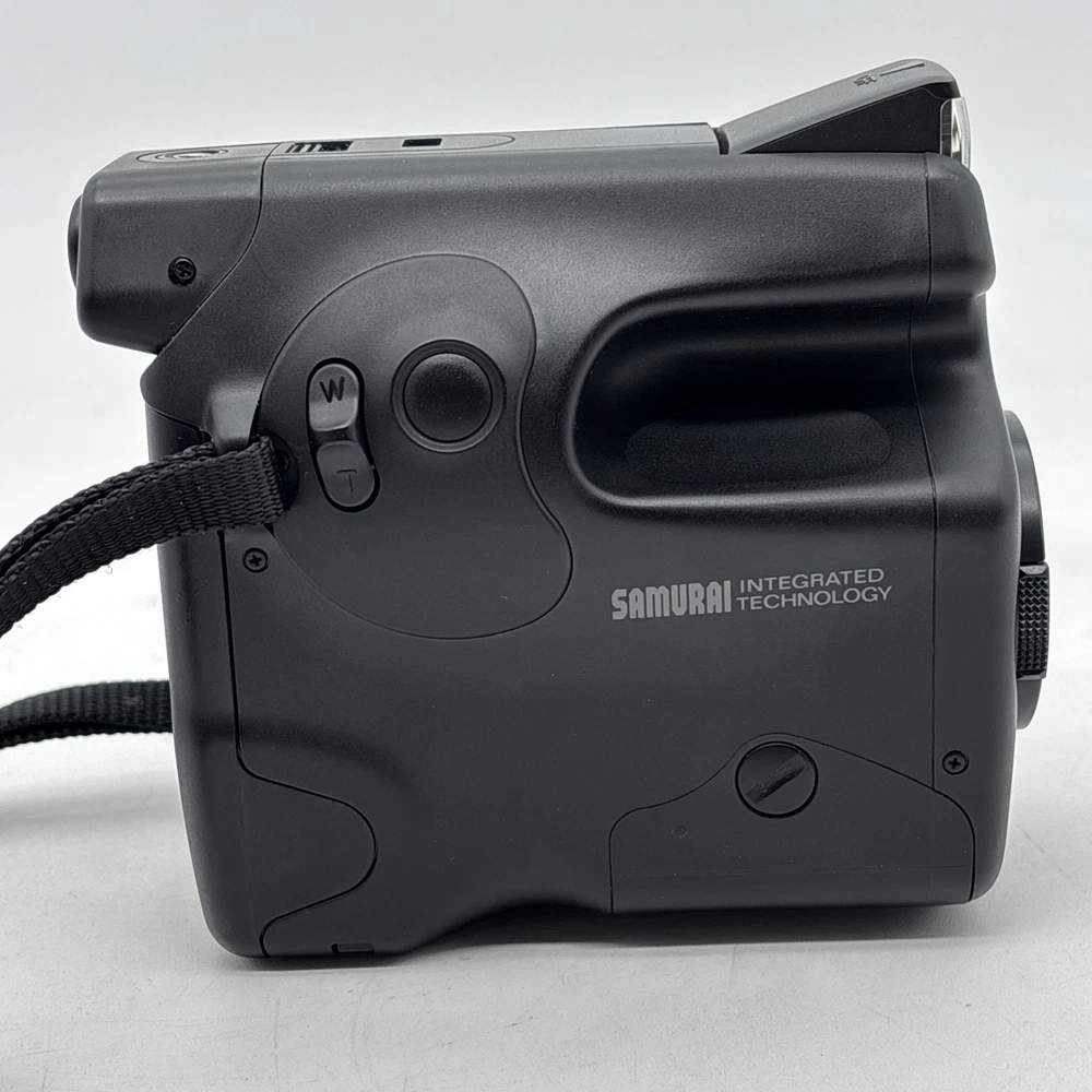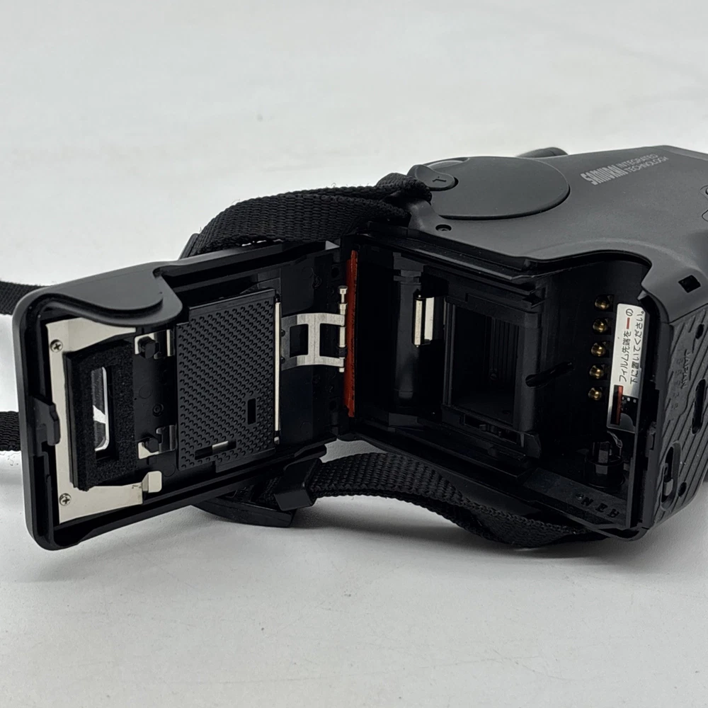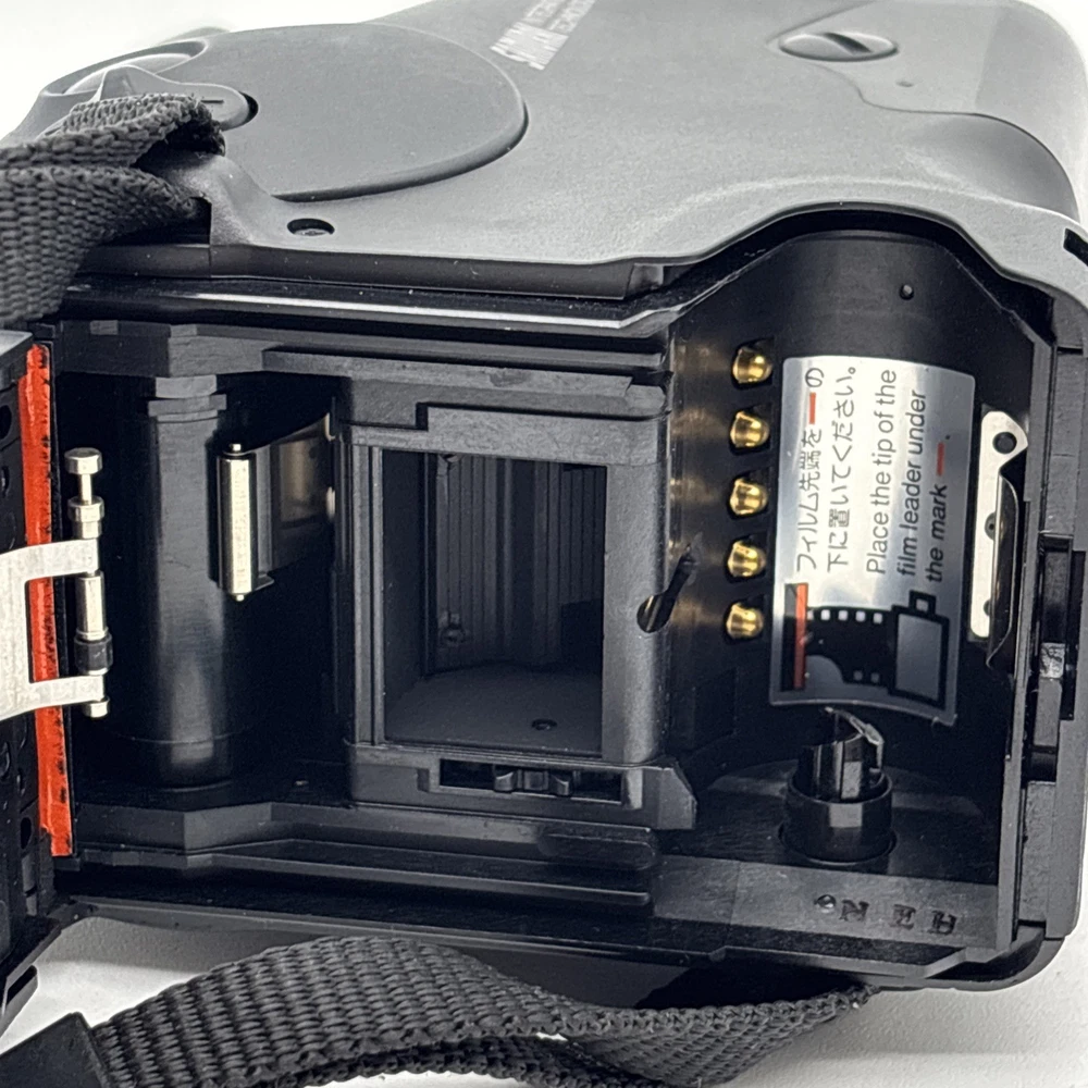Camera is in great cosmetic condition, but has many functional issues. The biggest issue, is that the film does not advance. When you put film in and close the door, it loads and advances to the first frame. But that is all it does. Film does not advance after taking a picture. The next biggest issue is the lens is foggy. There does not appear to be any fungus, it’s just foggy. This can be seen looking at the front of the lens, and also seen looking through the viewfinder. And finally, we could not get the flash to fire when testing. This camera is being sold as-is. Non-Working condition. For parts or repair. Power zoom works. Battery compartment is clean and corrosion free.