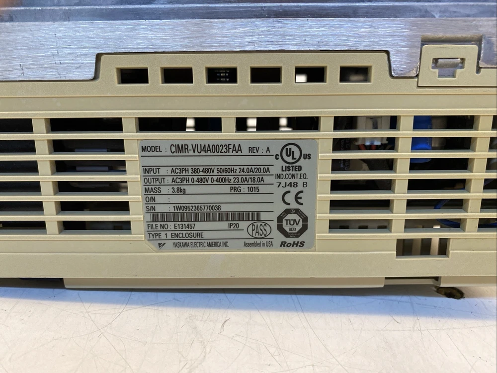 UNTESTED. MISSING FRONT COVER. SELLING FOR PARTS. Contains scratches and scuffs from previous use. Includes Yaskawa CIMR-VU4A0023FAA Rev: A AC Drive . PLEASE SEE PHOTOS. Does not include any additional hardware or accessories not displayed in photos. OFFERS WELCOME FREE SHIPPING TO THE CONTINENTAL UNITED STATES ONLY All shipping prices are quoted for The Continental United States. If you live outside the Continental U.S. and your item cannot be shipped through a global shipping center we will contact you. Returns accepted within 30 days. The buyer is responsible for return shipping. A restocking fee may apply. SOLD AS IS SL