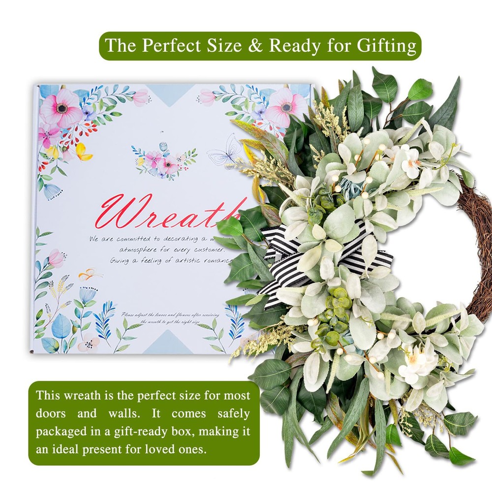 Wreaths for Front Door Year Round, 20'' Artificial Green Spring Summer Lambs Ear Wreath for Farmhouse Porch Window Wall Home Decor Lamb’s Ear Wreath for All Seasons:This handcrafted lamb’s ear wreath features a unique half-covered design, blending natural charm with modern aesthetics. It’s perfect for hanging on your front door or in any part of your home, effortlessly fitting into various decor styles. The neutral tones and farmhouse-inspired bow make it a versatile decoration Farmhouse Wreaths for Front Door:Made with lamb’s ear leaves, willow leaves, hydrangeas, and a charming bow, this wreath is crafted by hand. The back includes a rattan ring for easy hanging. The combination of rich natural elements beautifully captures the essence and vibrancy of nature, enhancing your home’s ambiance Spring Summer Front Door Wreath:Ideal for both indoor and outdoor decor, this wreath can be hung on your front door, living room, over the fireplace, on cabinets, walls, windows, or shelves. It effortlessly creates a cozy, farmhouse vibe. If using outdoors, avoid direct exposure to sunlight and rain to extend its longevity Artificial Wreaths for Outdoor Indoor: This year-round wreath, handcrafted by experienced artisans, comes with a beautiful gift box, making it a perfect gift option. It's easy for customers to package and store, allowing them to share the beauty of nature Door Wreaths for Front Door Outside: Measuring approximately 20-22 inches in diameter, the wreath is tightly packed to prevent damage during shipping. Please adjust the leaves on the edges to achieve a perfect appearance Add a touch of natural charm to your home with our wreaths for front door! This handcrafted lamb's ear wreath features soft lamb’s ear leaves, paired with vibrant willow leaves and lifelike berries, creating a fresh and natural aesthetic. Its unique half-covered design gives the wreath front door a rich, layered look, making it a perfect choice for front door décor. This versatile door wreath brings a welcoming, seasonal touch to your home. Whether hung on your front door, in the living room, kitchen, or used for weddings, parties, and other special occasions, this spring wreath for front door seamlessly blends into any season or décor style. As an ideal spring wreath, it adds a warm, inviting atmosphere to your home. This door wreath for front door outside is perfect for adding a natural touch to your outdoor spaces as well. Designed as a farmhouse wreath, it’s a wonderful decoration for front door wreaths for all seasons, from winter wreaths to spring wreaths for front door. This artificial wreath is crafted to last and maintains its fresh look throughout the year, making it a perfect outdoor wreath for all occasions. Add this stunning wreath to your front door wreaths collection and celebrate every season in style. SHIPPING Domestic Buyers - We have confidence in our products, but if you are not fully satisfied please contact us within 30 days of purchase and you will get full refund. - We ship within 3 business days of payment, usually sooner - We offer FREE shipping on all orders! - We only ship to the lower 48 states, no APO/FPO addresses or PO Boxes allowed International buyers – please note: Import duties, taxes, and charges aren't included in the item price or postage cost. These charges are the buyer's responsibility. - Please check with your country's customs office to determine what these additional costs will be prior to bidding or buying. * Order Cancellation Policy ** You can return a product for up to 30 days from the date you purchased it. 1. The seller reserves the right to cancel the special case only due to eBay cancellation fee. 2. The decision of seller is the final. 3. The seller will respond to the cancellation request within 2 business days. Please wait for the result of cancellation. 4. In case the cancellation is not completed by some reasons, the buyer can follow the options below to get the refund. 4.1 The buyer can reject the item when it arrives. 4.2 The buyer can send the item back to the seller within 30 days If the buyer receives item (USA Shipment ONLY). The seller will provide the FREE return label to the buyer when the buyer opens " Return Item" case on eBay by using the reason as "Change my mind" ONLY. 5. When buyer has placed the order. The order will be processed and completed by automatic warehouse system within 5 minutes. In case that buyer sends the cancellation request after 5 minutes of placing the order, the request will be rejected. **Sending direct message to cancel the order is not allowed for every case.* Return Policy For the return case - If buyer would like to return the items for refund or replacement, please CONTACT SELLER to receive the free return label from seller. The refund or replacement will be processed with the tracking number of return label which is provided by seller only. The other ways of return which are not approved by seller will not be processed for the refund or replacement.