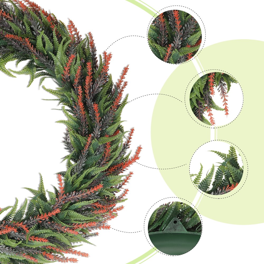 Our wreath can be used all year round, creating a rich atmosphere for your home, warm and elegant, and is a perfect and warm front door decoration wreath. The front door wreath has a unique design, a natural look, and is fresh and elegant. Warm Tips: 1. The wreath may be squeezed during transportation. Please sort and shape it before hanging. 2. Some decorations on the wreath are slightly detached, which is normal and will not affect the overall image of the wreath. 3. There may be slight color difference due to shooting light and screen display. Material: Plastic Exquisite appearance Sturdy and durable Suitable for all year round Wide range of uses