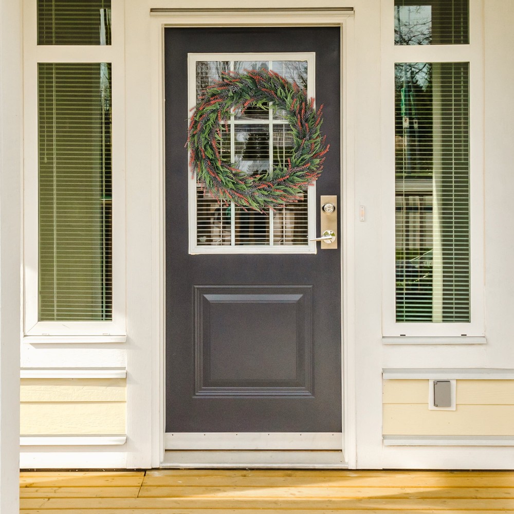 Absolutely love this wreath! The rich purple color adds a warm, elegant touch to my front door all year round. It looks so natural and fresh—exactly as pictured. Even though it needed a little fluffing after shipping, it was super easy to shape. The slight variations in the decorations give it a charming handmade feel. Perfect for anyone who wants a stylish, hassle-free decoration!