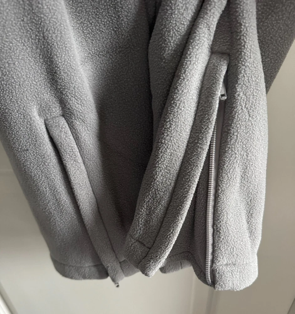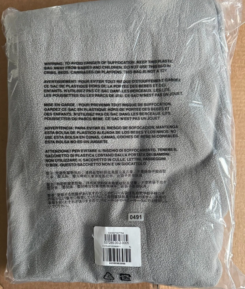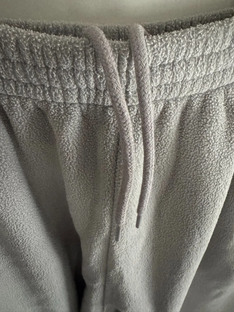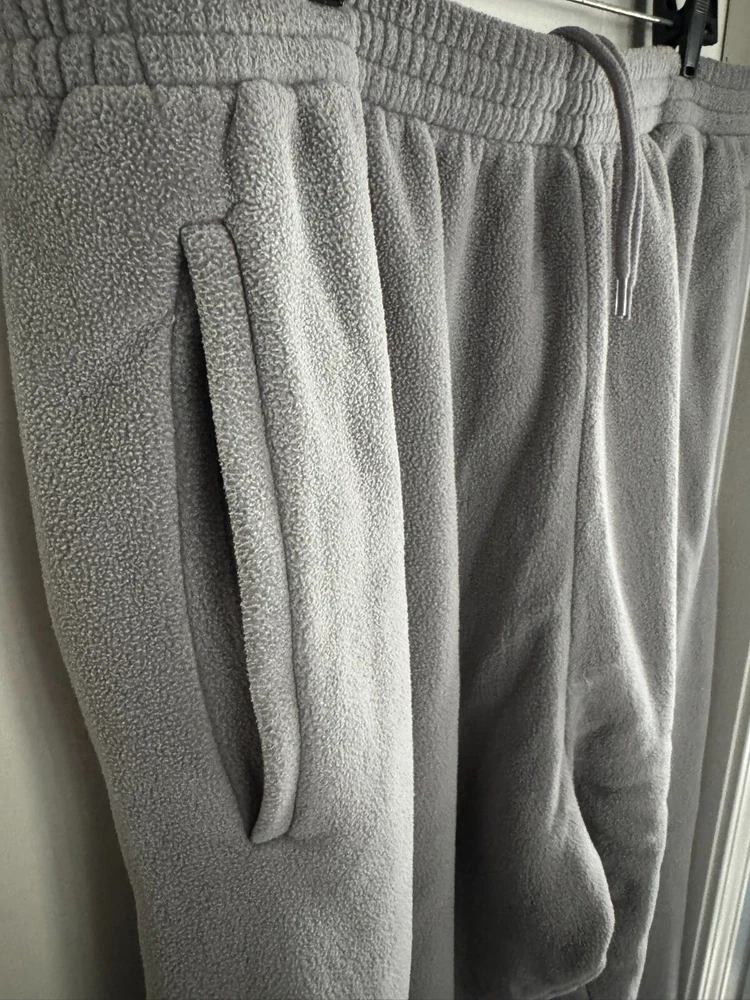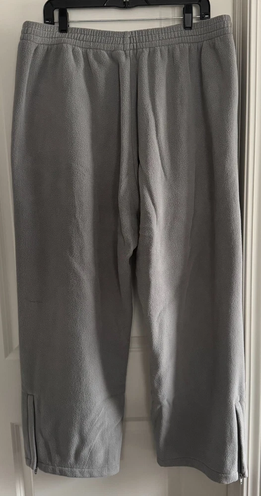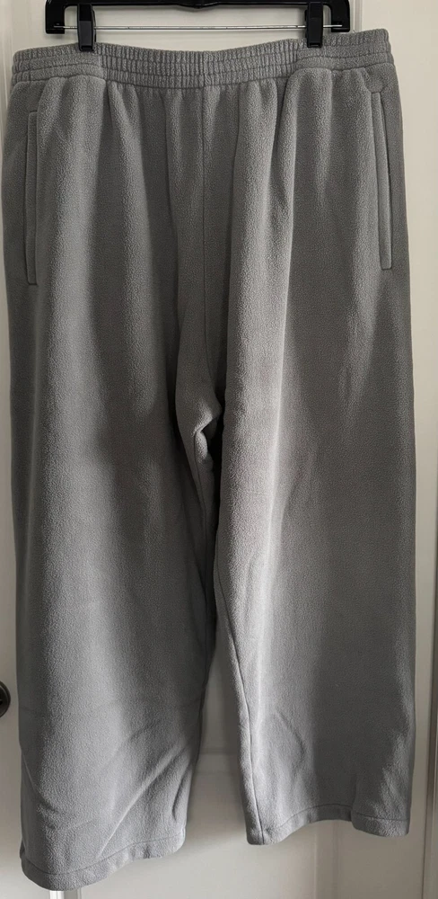 New in the bad with drawstring and zippers on the bottom. The Yeezy Gap H10 Polar Fleece Grey Pants in size XL feature a zipper on the leg and are designed for activewear purposes. Made of a blend of polyester and cotton fleece fabric, these relaxed fit sweatpants offer comfort and warmth, making them ideal for winter, fall, and spring seasons. The oversized style with a straight leg design is suitable for various activities such as gym training, track and field, walking, basketball, and more, combining a designer aesthetic with functional performance features.