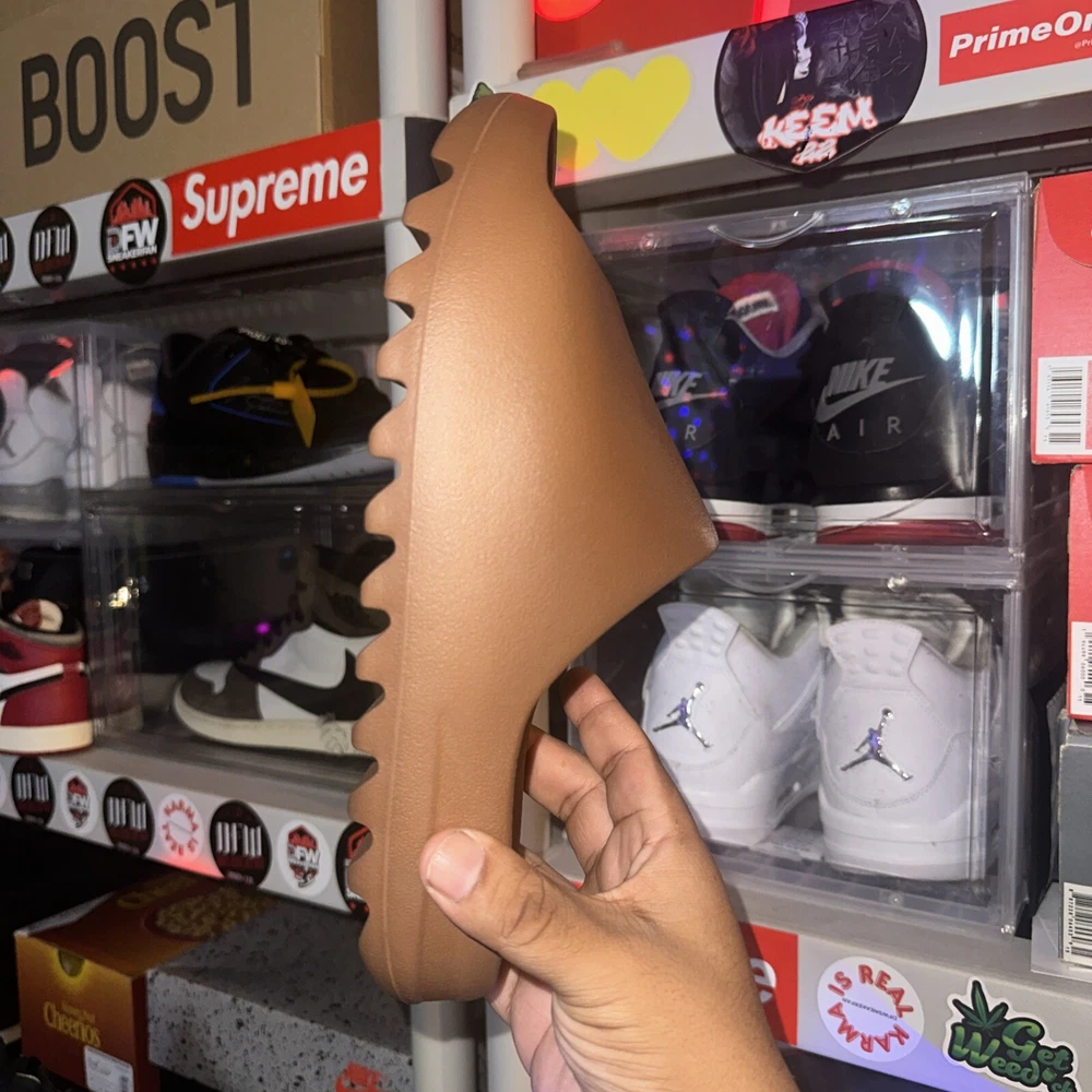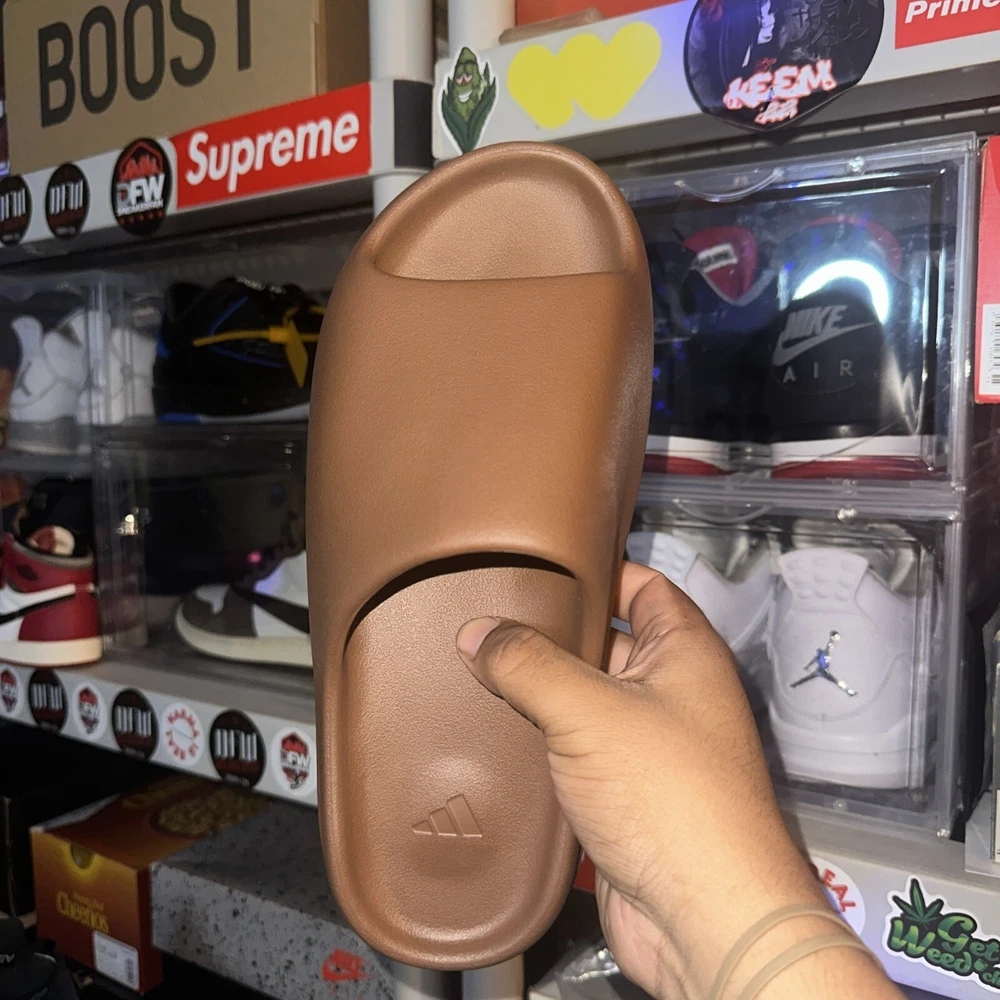 UPC: 0195735932242 Model: adidas Yeezy Slide gtin13: 0195735932242 Upper Material: Flax Product Line: adidas Yeezy Type: Athletic Style: Sneaker Color: Brown Release Year: 2021 Department: Men Brand: adidas US Shoe Size: 10 Style Code: GX6141