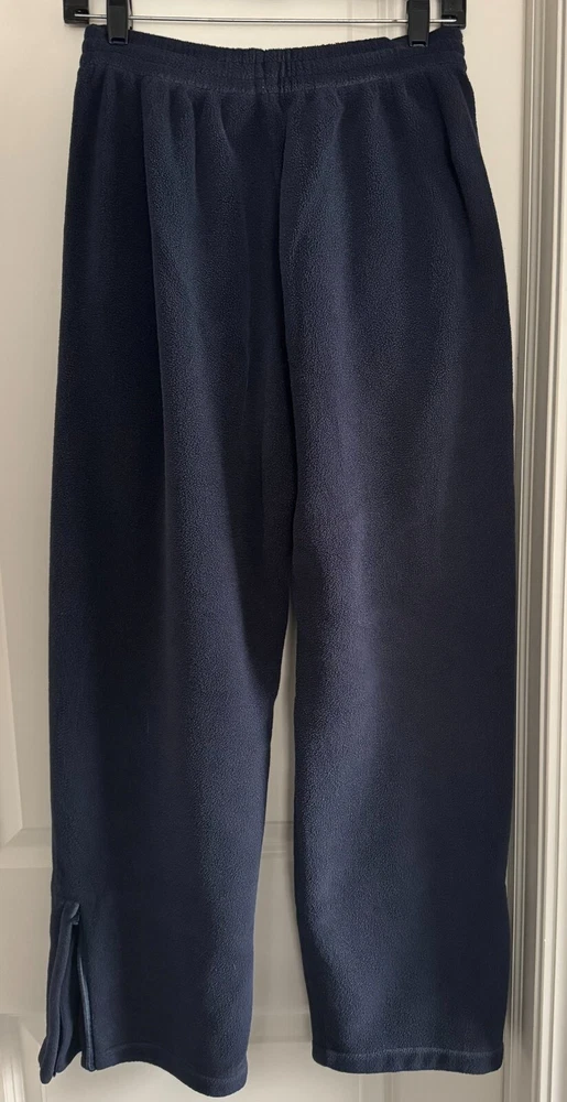 New in the bag with drawstring and zippers on the bottom. The Yeezy YZY x GAP H10 Polar Fleece Pants in navy blue are designed by Kanye West and feature a drawstring closure for a relaxed fit. Made of a blend of polyester and cotton with a fleece fabric type, these sweatpants are heavyweight and comfortable, perfect for winter, fall, and spring seasons. The size L pants are part of the collaboration between Yeezy and GAP, offering a designer piece suitable for activewear occasions such as gym training, track and field, walking, and more.