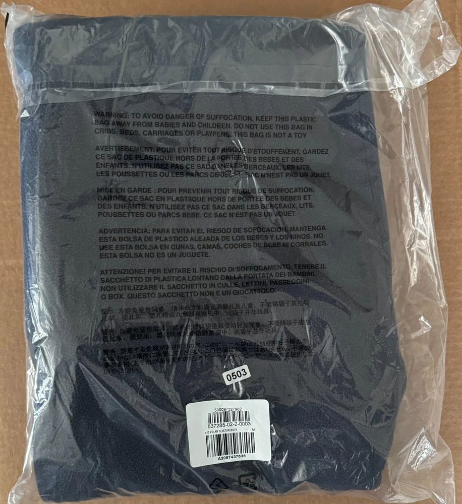 New in the bag with drawstring and zippers on the bottom. The Yeezy YZY x GAP H10 Polar Fleece Pants in navy blue, size M, are designed by Kanye West under the Yeezy brand. These drawstring sweatpants are made of a comfortable polyester and cotton blend fleece fabric, suitable for winter, fall, and spring seasons. The relaxed fit pants feature a straight leg style and heavyweight construction, perfect for activewear activities like gym training, track and field, walking, school, golf, CrossFit, basketball, bodybuilding, and running.