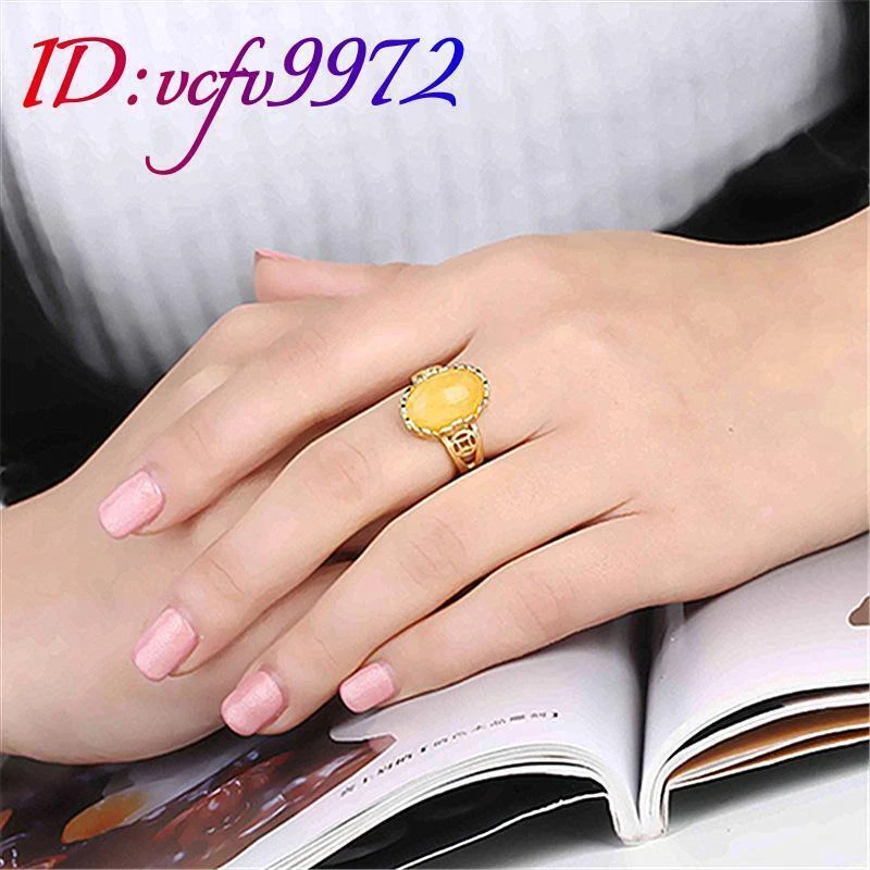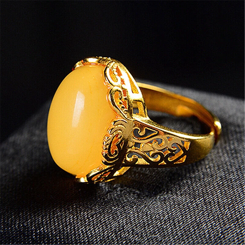 Yellow Amber Rings Amulet Natural Jewelry Charm Designer 18K Gold Plated