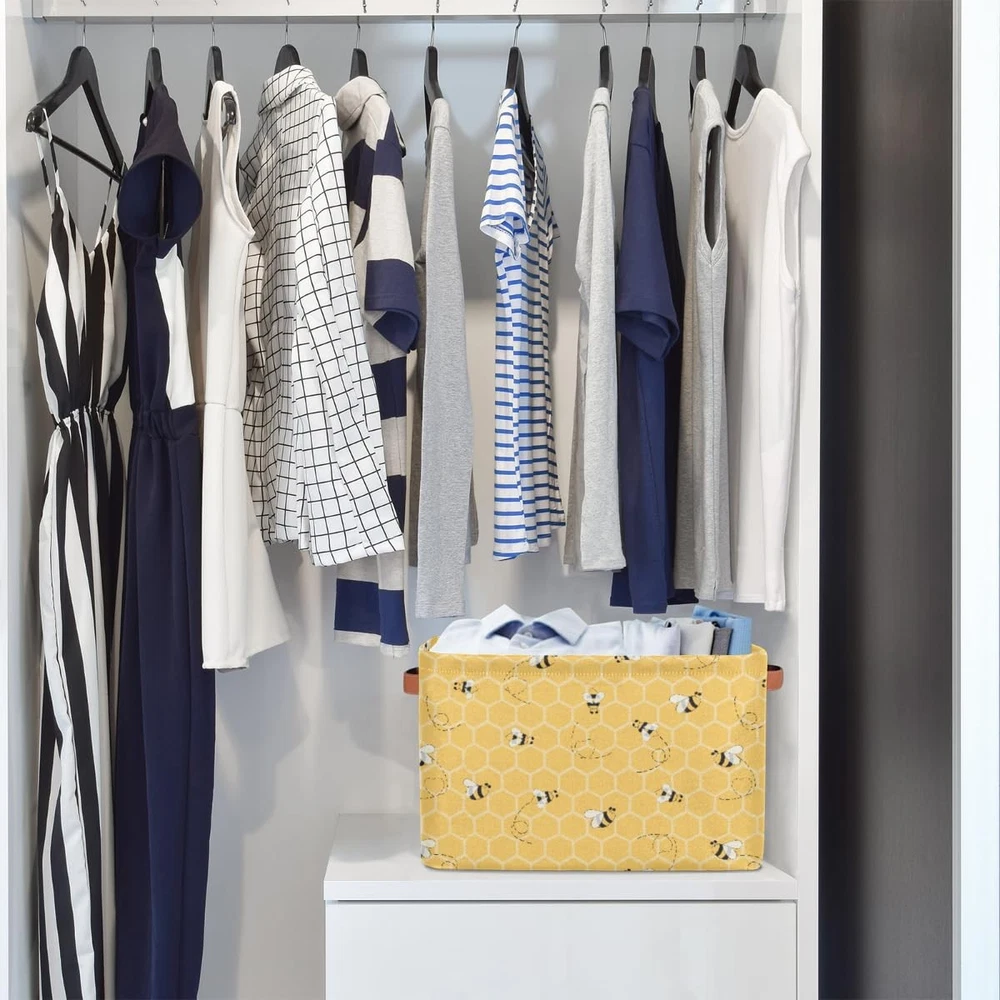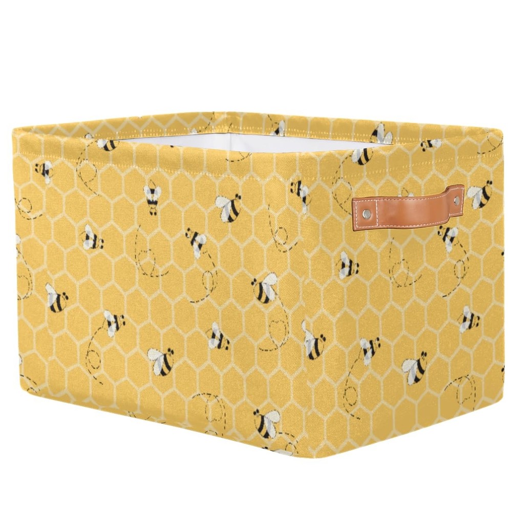 This cute bee-themed storage bin is perfect for keeping toys, clothes, or blankets organized! The sturdy polyester fabric holds up well, and the compact size fits anywhere—bedroom, nursery, or playroom. Easy to clean and super versatile, it adds a fun honeycomb touch while keeping clutter under control. Love how practical and adorable it is!