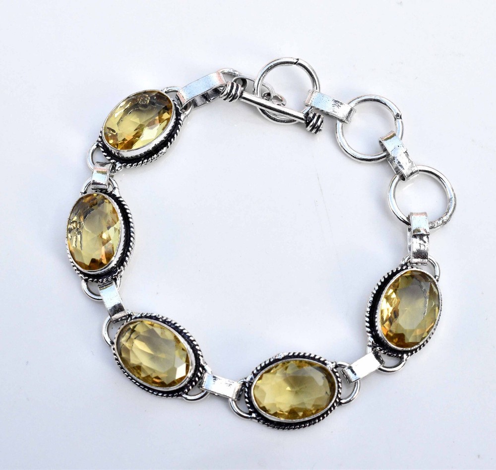 Material: Gemstone Country/Region of Manufacture: India Main Stone Shape: Same As Picture Metal Purity: 925 Parts Per 1000 Setting Style: Bezel Total Carat Weight: Same As picture Metal: Sterling Silver Seller Warranty: Yes Vintage: No Personalize: No Number of Gemstones: 1 Seller Notes: “If You Buy 3 Items Then i will Give You 1 item Free As Gift” Secondary Stone: No Stone Closure: NA Color: Silver Type: Bracelet Shape: Same As Picture Certification: NA Features: NA Collection: NA Main Stone Width: NA Cut Grade: Excellent Base Metal: German Silver Chain Type: NA Theme: Beauty Number of Diamonds: NA Charm Type: NA Main Stone Treatment: NA Colored Diamond Intensity: NA Antique: No Main Stone Color: Yellow Country of Origin: India Occasion: Every Occasion Main Stone Creation: Lab-Created Brand: Unbranded Style: Charm Signed: No UPC: NA Sizable: Yes Wholesale: Yes Main Stone Depth: Na Handmade: Yes Diamond Clarity Grade: NA Main Stone Length: NA gtin13: NA Main Stone: Yellow Citrine Item Length: 7.8 Diamond Color Grade: NA
