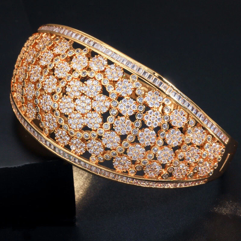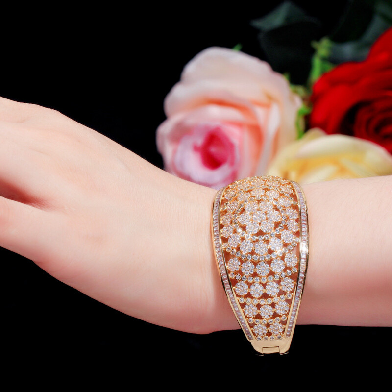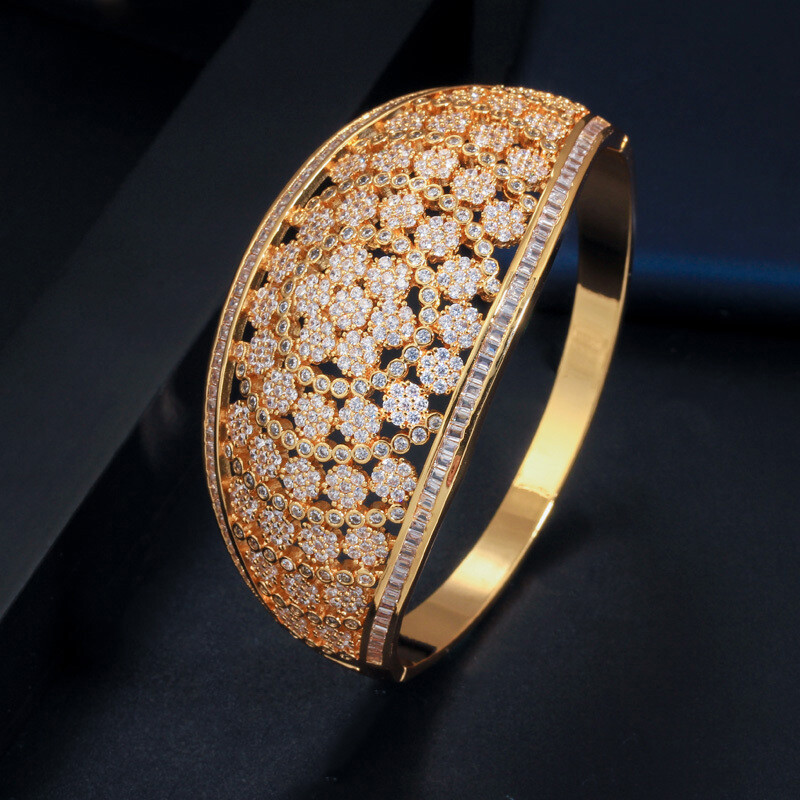 Yellow Gold Plated CZ Zircon Flower Hollow Out Wide Cuff Wedding Bangle Bracelet There’s an old saying that: Jewelry is woman’s best friend. And one appropriate luxury jewelry helps to spice up your charm and beauty. And here’s the reason why you choose us: ★ We adopts high-grade Cubic Zirconia, which displays pure and fascinating color; ★ All our items are Elaborate, Gold Plated (white gold plated/yellow gold plated/black gold plated), by which the texture is smooth and with fancy look, and will be appropriate for so many occasions; ★ Our items are with Exquisite Design, which shows your excellent taste, and could catch people’s attention easily. ★ Ideal gift for mother, wife, girlfriend, daughters, brides, bridesmaids, ect. Specification Type: Bangle & Bracelet Stone Material: Cubic Zirconia Base Metal Material: Brass Metal Material: Gold Plated Shape: Flower Color: White Suitable Occasion: Daily, Holidays, Party, Engagement, Wedding, Anniversary, Valentine’s Day, Carnival, Performance, ect. Package Includes 1 Piece of CZ Bangle Bracelet Please note: *Please bear in mind that there might be 1~2cm difference due to manual measurement. *Our digital images are as accurate as possible. However, different monitors may cause colors to vary slightly. *We offer after-sale service, if there is any item problem, please feel free to contact us via eBay message first, your kind understanding is much appreciated. About Us Payment Shipping Returns Contact us About Us Topjewel33 is a newly-established online store which dedicates to provide excellent luxury jewelry products, such as earrings, rings, necklaces, bracelets, brooches, hair accessories, and high grade jewelry sets. We target worldwide market, and we strive for offering you unbeatable low price and satisfied customer service. Payment We accept PayPal payment only. Payment must be received within 7 days from the date of purchase. Shipping We do hope all our customers could receive the order asap, so normally, the order will be sent out within 2 working days. And as the delivery is handled by the third party, sorry that we could not guarantee which date you could receive the package. And sometimes the delivery might be a little bit delay, especially in high volume or holiday seasons. However, please don’t worry and feel free to contact us via eBay message, and we will do our best to help. And we sincerely apologize for any inconvenience may cause. Sometimes custom tax might be required, and we are afraid that it will be covered by the buyers, thank you for kind understanding. Returns We provide 30 days money back return policy. And if you have any problem with the item, please make sure the item is in the original package and feel free to contact us via eBay message first, thank you for kind understanding and cooperation. Contact us We offer customer service, if you have any problem with the item before/during/after the purchase, please feel free to contact us via eBay message, and we will get back to you asap. Thank you for your kind patience.