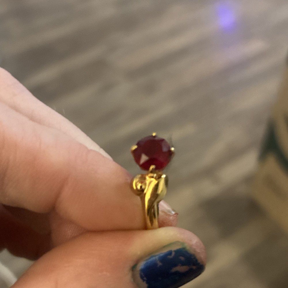 HomeYellow Gold Ring with Round Red Gemstone Solitaire Prong Setting, One Stone