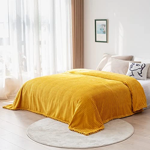 Return Policy Fast Delivery Trusted seller Fleece Blanket Throw Size – 51x63, Yellow Soft, Plush, Fluffy, Fuzzy, Warm, Cozy Perfect for Couch, Bed, Sofa - with Pompom Fringe Flannel Product Description 【Pompom & Strip Design】- Flannel fabric with pompoms fringe around the blanket, different color and white stripe pattern with 3D touching offers you amazing senses of softness. The fabulous color revives this blanket with an elegant appearance to complement your room a chic feeling. 【Soft & Lightweight】- The throw we offered is designed to be simple but elegant, this plush throw is super soft, warm and lightweight. Fleece bed blanket brings you more breathable and lightweight feeling than regular cotton blanket throw to keep your body warm. 【Versatile】- As a perfect companion while having a comfy nap in your work with our super cozy blanket - a must-have for camping or picnic in humid weather while enjoying happy hours. Protect your luxury bed and couch from dirt and stain to keep them fresh and clean. 【Perfect Gift Choice】- Soft blanket utilizes 100% microfiber fabric all layers to last for long use and provides fade resistance better than others like cotton blanket. Our super-soft, plush microfiber blanket is perfect for use all year round.Mother’s Day Gifts for Mom.Christmas Blanket Gift for Winter. 【Easy to Care】- Machine wash with cold water separately on gentle/delicate cycle. Tumble dry on low heat. Avoid direct heat, No bleach. It is wrinkle and fade resistant, never shed. Shipping Returns Payment Shipping Shipping is FREE to all addresses other than APO/PO boxes in the lower 48 states. All our stock ships from US-based warehouses. Shipped via USPS or UPS (depending on location and package weight) Unless stated otherwise, all orders will ship within 24-72 hours of your payment being processed. Check our feedback to see the great reviews of FAST shipping we offer. Returns Seller does not accept returns Payment We currently accept payment via eBay managed payments only. Once payment is cleared, we will dispatch your shipment within 1-3 business days. Please refer to the "Shipping" tab for more information regarding shipping speed to your destination.