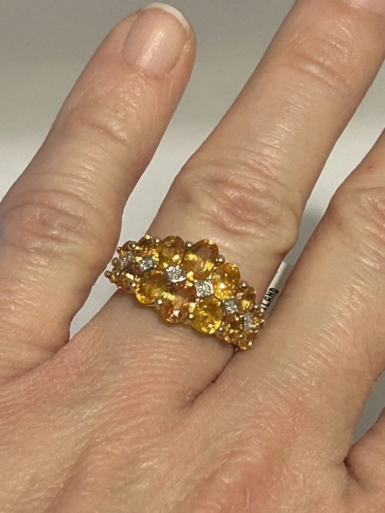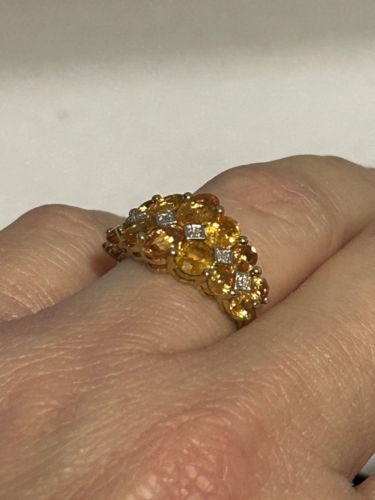 This stunning ring features an oval-shaped yellow sapphire as the main stone, complemented by white diamond accents set in 10k yellow gold. The ring is designed for women and is available in size 7. The elegant prong setting style enhances the vibrant color of the sapphire, making it a perfect piece for special occasions or everyday wear. This high-quality ring, crafted in Thailand by Jtv, showcases a beautiful combination of yellow and white tones that are sure to catch the eye and add a touch of sophistication to any outfit. Yellow sapphire is celebrated as a gemstone of abundance, prosperity, and success. Its radiant golden hue resonates with energies of wealth and achievement, making it a popular choice for those seeking to unlock their full potential in professional and financial pursuits.