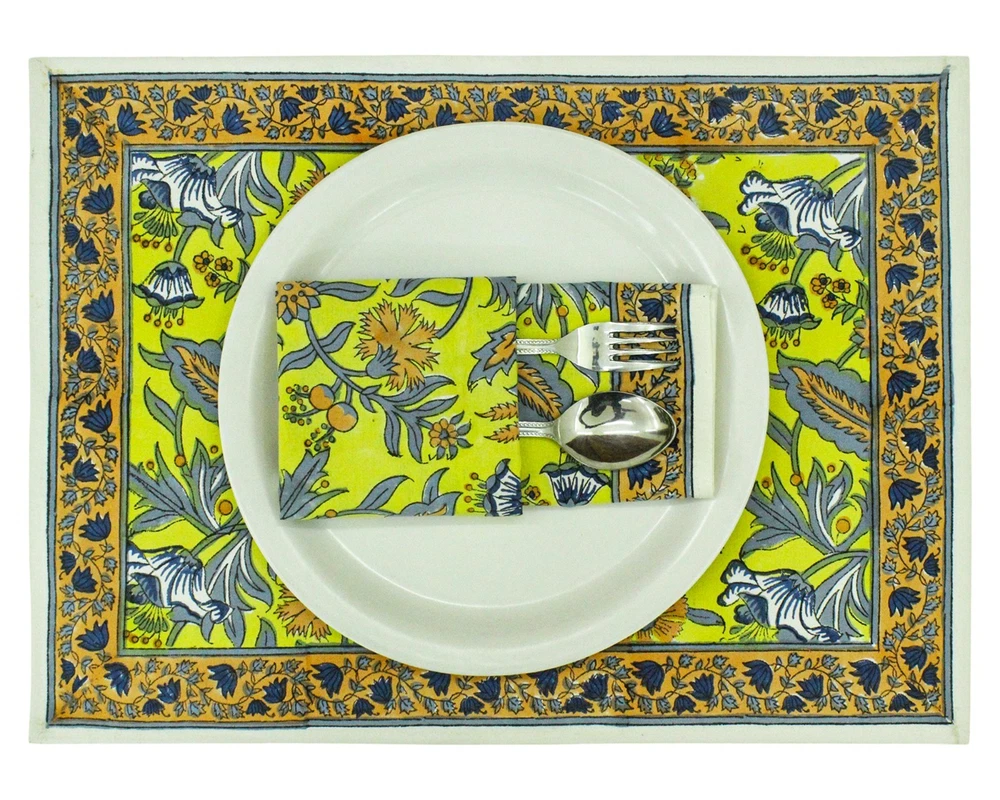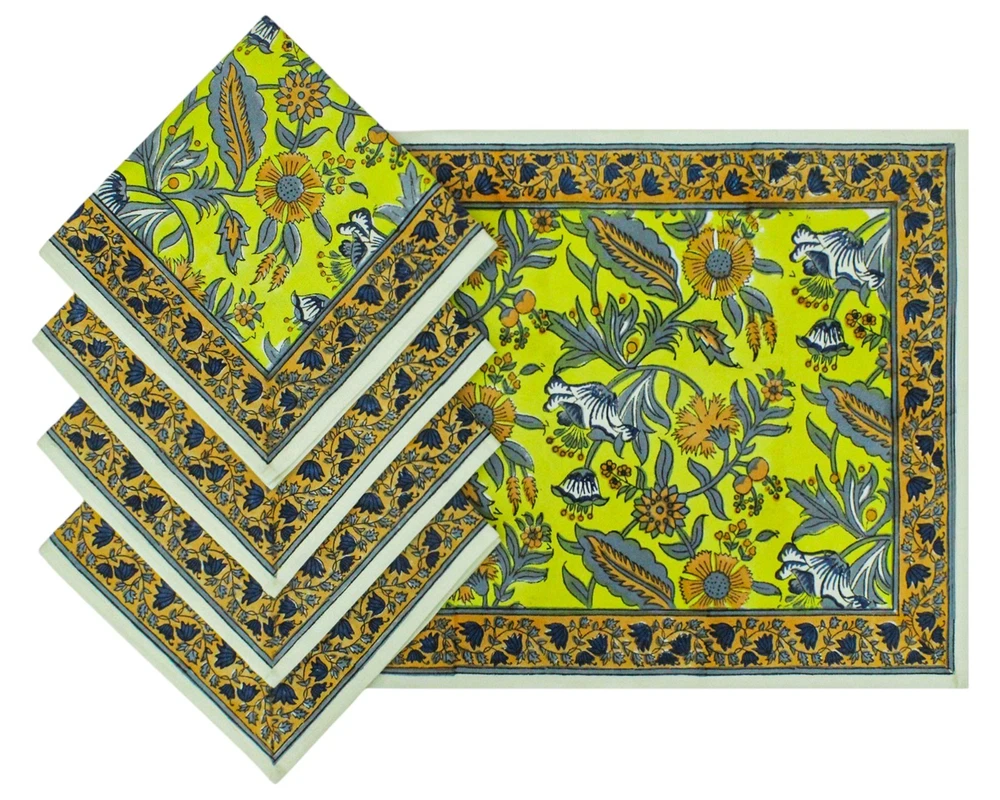 Features: Machine Washable, Smooth Type: Napkins California Prop 65 Warning: Not Applicable Style: Indian Department: Unisex, Women Room: Dining Room, Guestroom, Indoor/Outdoor, Kitchen, Living Room, Sunroom Bundle Description: No Pattern: Floral Shape: Square gtin13: Not Applicable Color: Yellow and Gray Model: NP-5005 Personalize: Yes Material: 100% Cotton Brand: Home Spun & Crafts Item Length: Custom Sizes Item Width: Custom Sizes UPC: Not Applicable MPN: not Applicable Theme: Oriental and traditioan Hand Block Prints Custom Bundle: No Country/Region of Manufacture: India