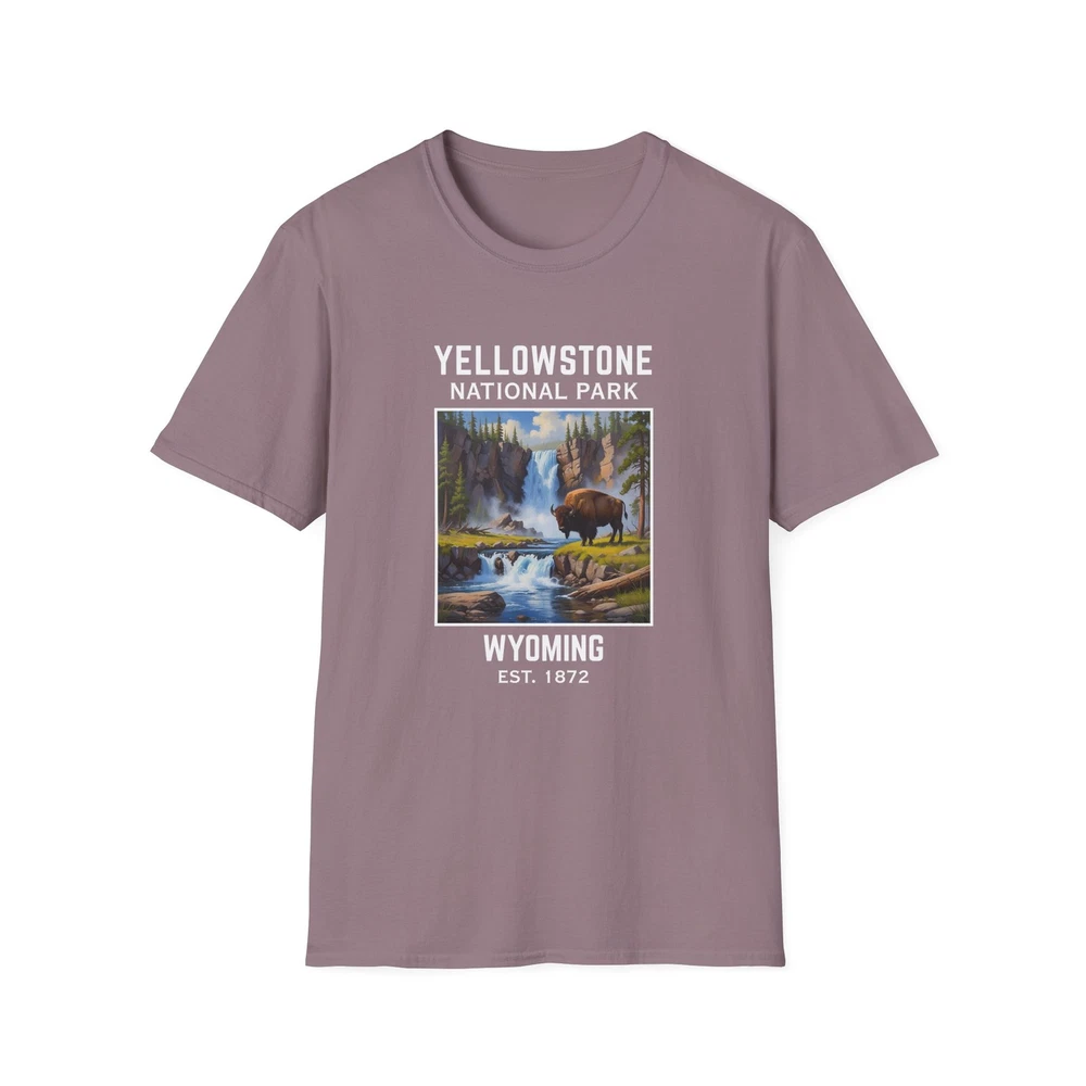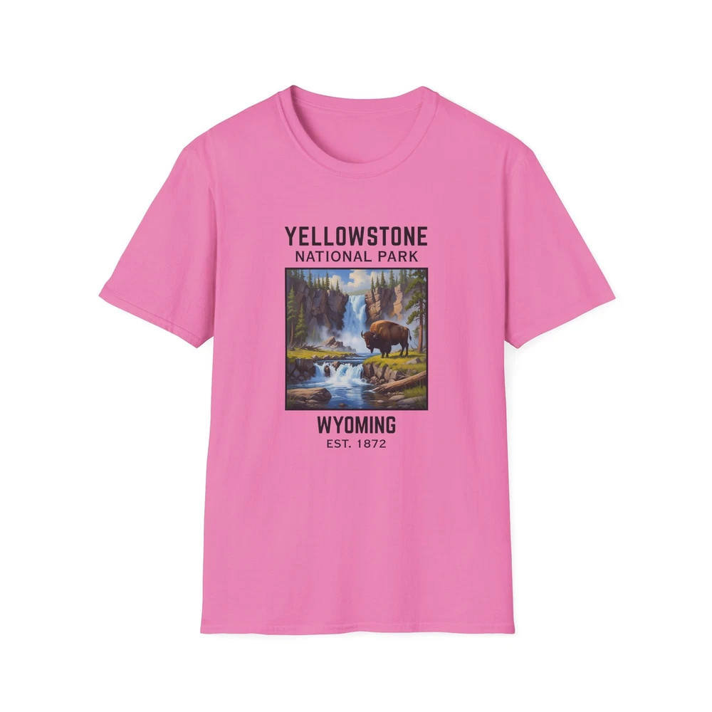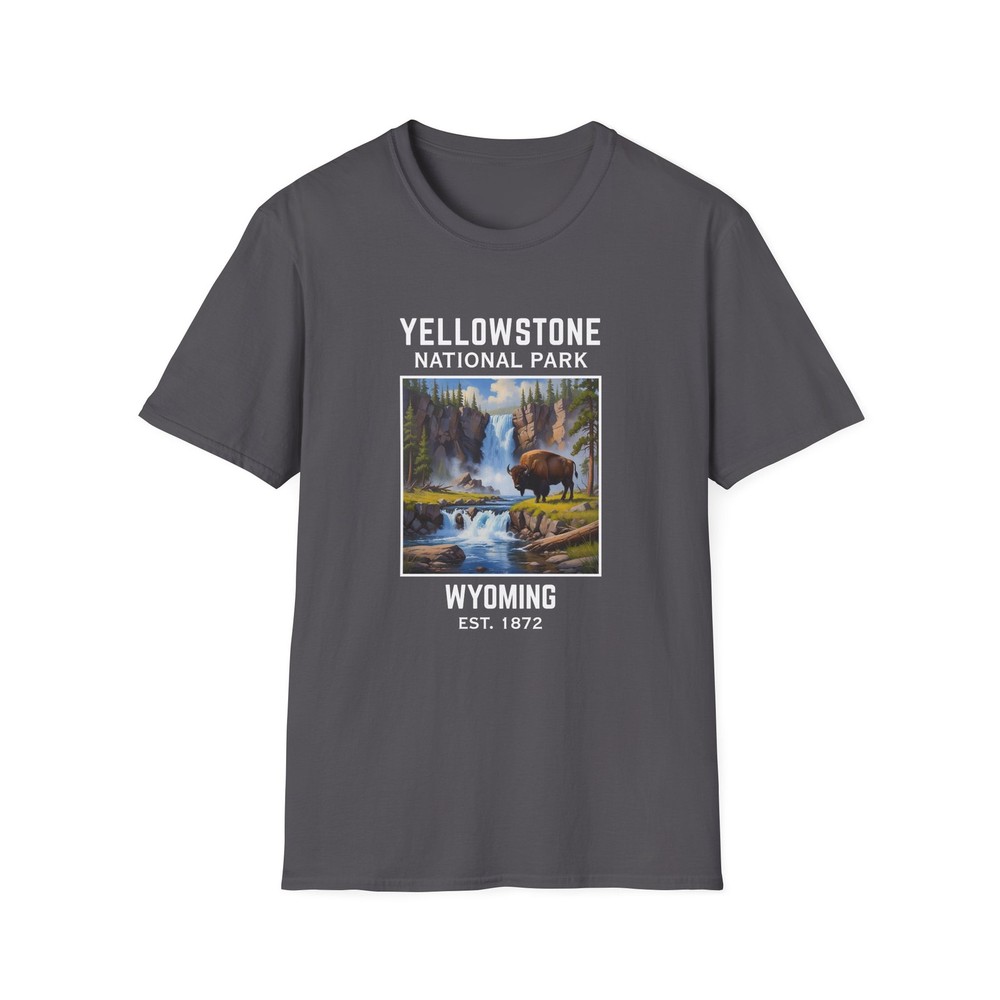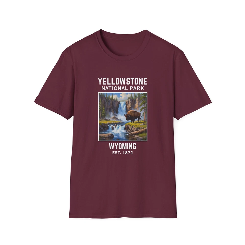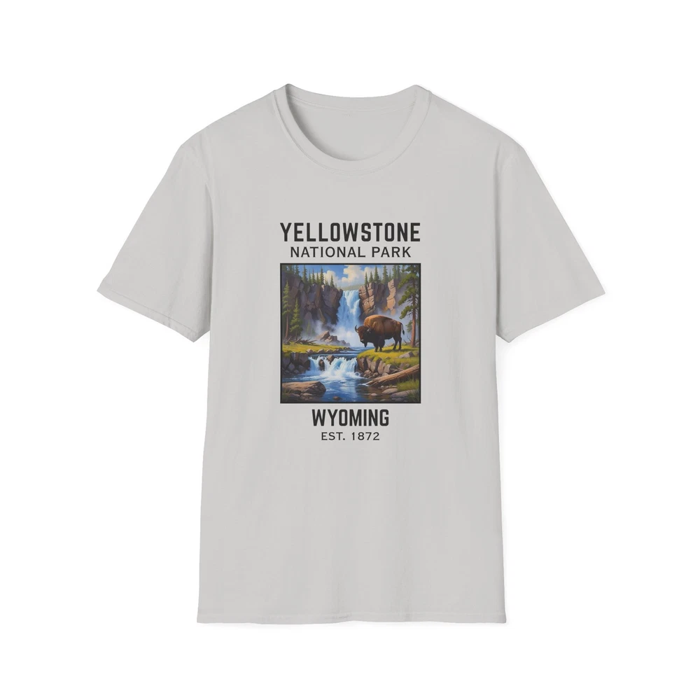 A Yellowstone National Park Wyoming EST 1872 graphic T-shirt featuring a waterfall and a Bison, perfect for nature lovers and outdoor enthusiasts. This unisex t-shirt is made from durable and smooth fabric, with a classic fit and crew neckline suitable for any occasion. Product features - Made from 100% ring-spun cotton for lightweight comfort - Classic fit with crew neckline for versatile style - Ethically grown and harvested US cotton for sustainability - Available in various colors Care instructions - Do not dry clean - Do not bleach - Tumble dry: low heat - Iron, steam or dry: low heat - Machine wash: cold (max 30C or 90F), with similar colors