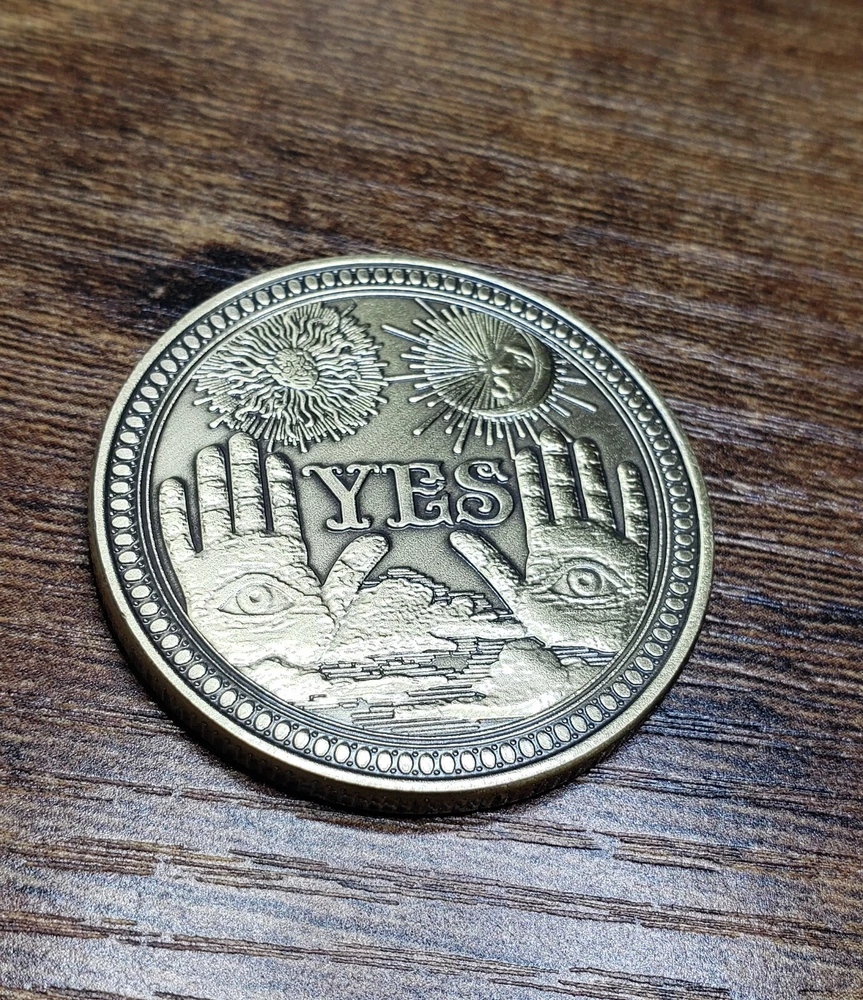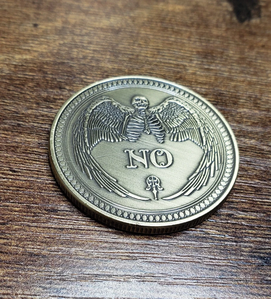 Yes or No Token Decision Coin Dark Bronze Color Angel Skeleton All Seeing Eye