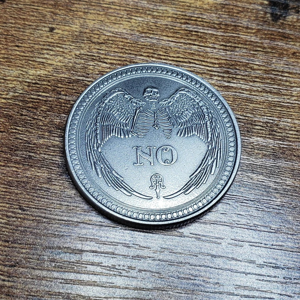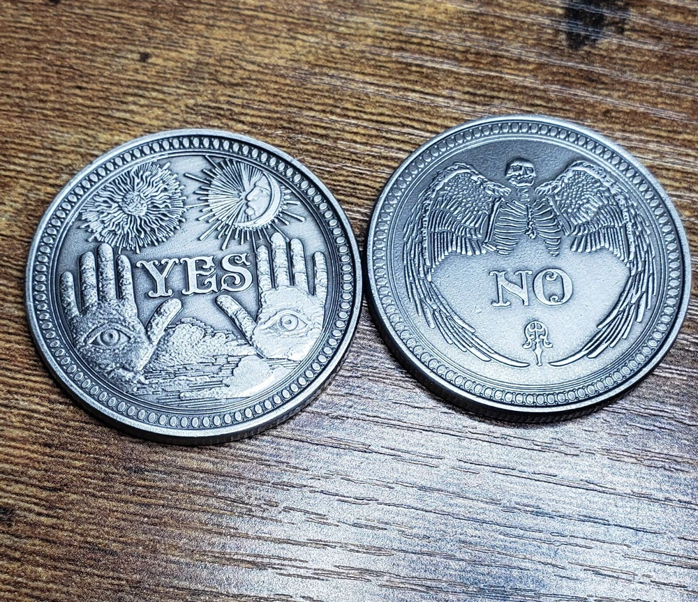 One new Yes or No Decision-Making coin in a dark silver color. This large coin is 1.5" in diameter and weighs one ounce. Features spiritual and occult symbols.