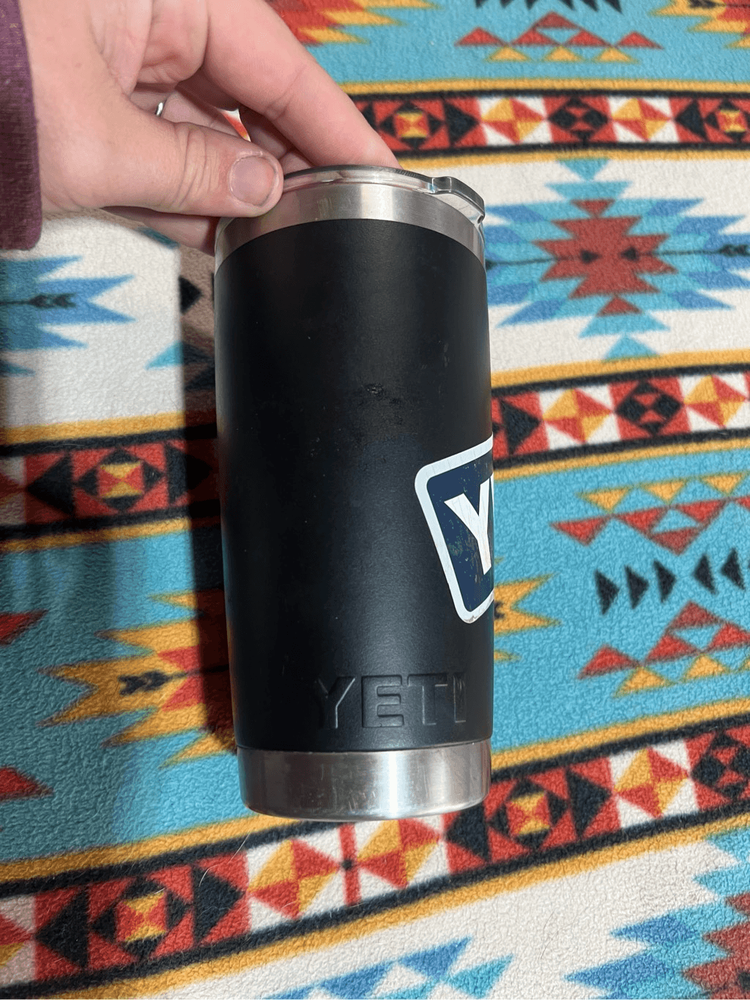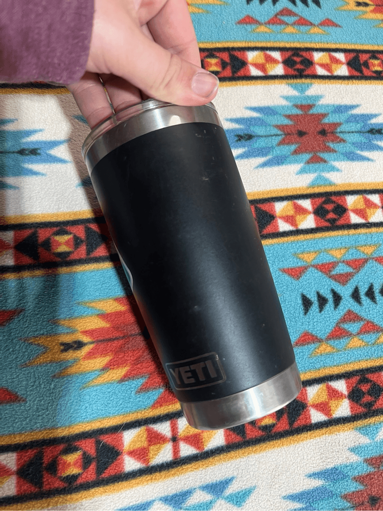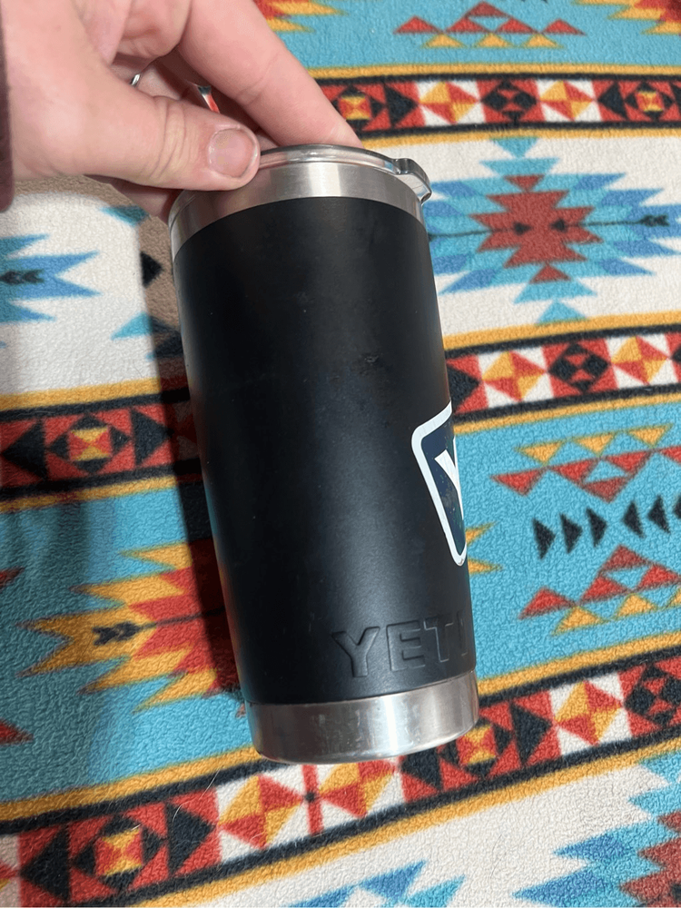 Yeti black travel mug 20 oz. Missing the slider piece for lid. (Could probably use a whole new lid) Preowned. Item is preowned and may have small flaws that I missed Color may very in person as my phone changes the colors sometimes Offers always welcome Check out our other listings! All items are cross posted.