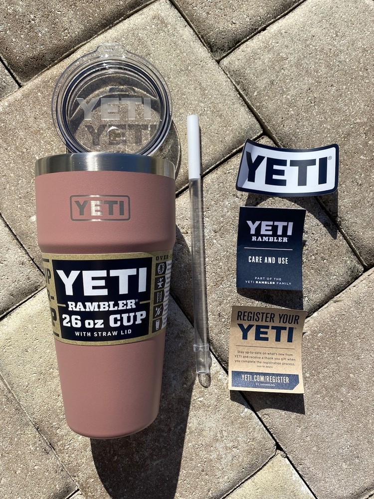 The Yeti Rambler 26 oz Cup with Straw Lid in Sandstone Pink is a rare and discontinued item that is highly sought after by collectors and enthusiasts. This tumbler features a click closure with straw top, making it convenient for on-the-go hydration. Made of stainless steel and insulated, it is perfect for keeping drinks at the desired temperature while camping, hiking, or participating in other outdoor activities. The tumbler also includes a sticker and straw, adding to its overall value and appeal. Perfect for those who appreciate quality and unique design in their water bottles.