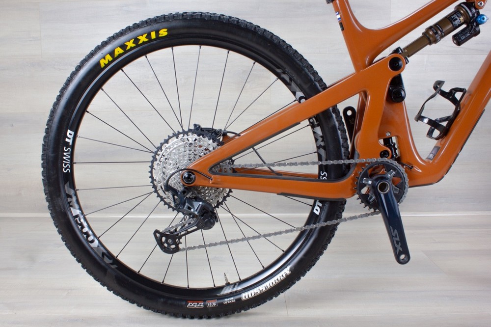 Yeti SB130 T2 - Large •Material - carbon •Brakes - Shimano SLX •MSRP - $7499 •Weight - 28lb •Cassette - Shimano 10/51 •Chainrings - 30T •Components group - Shimano SLX •Crank - 170mm •Drivetrain - 1x12 •Fit Range - 5.11 to 6.4 ( approximately ) •Fork - Fox 36 •Fork travel - 150mm •Miles - under 300 •Rear derailleur - Shimano SLX 12 speeds •Rear shock travel - 130mm •Seat post - Dropper FOX transfer •Stem - RaceFace •Tires - Maxxis Minion DHF 2.5 •Wheels, material - DT Swiss M1900 alloy •Tubeless compatibility - Tubeless •Handlebars - RaceFace •Saddle - WTB •Mechanic notes: Pre - Owned, Great shape! 100% ready for use! Minor signs here and there from regular use.
