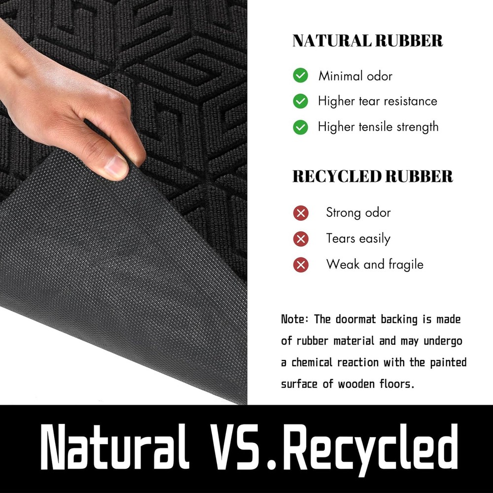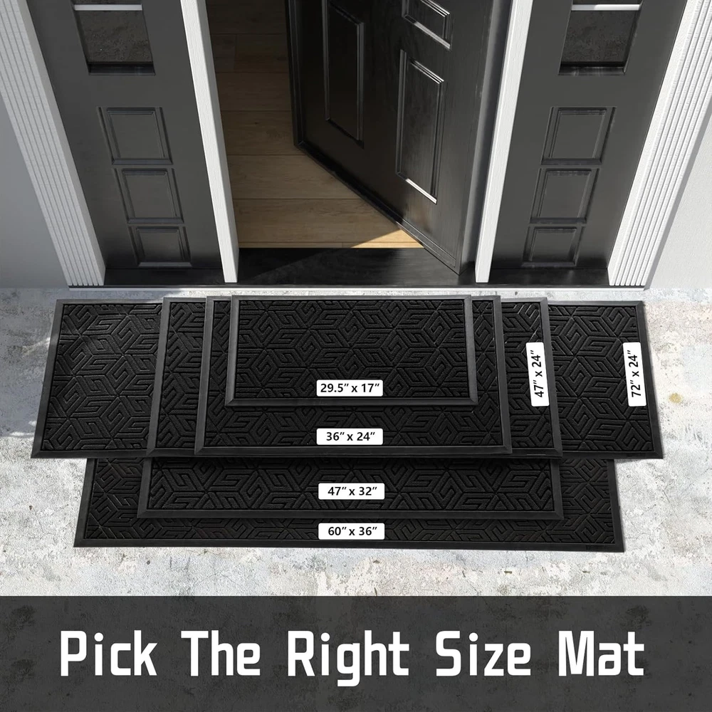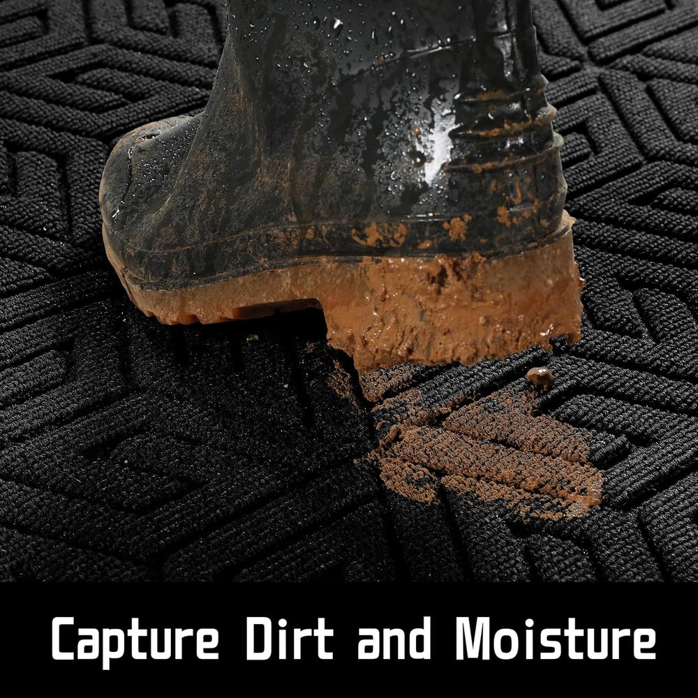 Yimobra Front Door Mat Outside Entrance, 36x24, Waterproof 36x24 Inch, Black Product Details Brand: Yimobra Size: 36x24 Inch Material: Polyester Weave Type: Machine Made Item Weight: 2.31 Pounds Pile Height: Low Pile Construction Type: Machine Made Back Material Type: Rubber Color: Black Indoor/Outdoor Usage: Outdoor, Indoor Theme: Sand Is Stain Resistant: Yes Product Care Instructions: sweep, vacuum, rinse, shake off Pattern: Geometric Shape: Rectangular Special Feature: Waterproof, Fade Resistant, Weather Resistant, Non Slip, Washable Room Type: Entryway, Patio, Hallway Product Dimensions: 36"L x 24"W Rug Form Type: Doormat Style: Modern Occasion: Housewarming Number of Pieces: 1 Item Thickness: 0.25 Inches Water Resistance Level: Not Water Resistant Is Autographed: No Age Range (Description): Adult Item Weight: 2.31 pounds Manufacturer: Yimobra Item model number: DM01 【Capture Dirt and Moisture】Yimobra front door mat fits all season and all weather, it features with patterned groove design that provide a good catcher for sand/ debris/ dust from bare feet and shoe/ sandel/ boot soles. The beveled border design helps to form a retention dam to catches everything the dogs bring in including muddy, wet feet 【Non Slip Natural Rubber Backing】Yimobra door mat is made of heavy duty non-slip natural rubber backing, natural rubber provides higher tensile strength, higher tear resistance, and less odor than synthetic rubber. And the heavy duty backing helps prevent you from slipping when entering and exiting, ensuring your safety and protecting your floor 【Stain, Weather and Fade Resistant】The Yimobra welcome mat is constructed to withstand all weather conditions, from snow and rain to mud and sand. It features a stain, weather, and fade-resistant topside, ensuring long-lasting use both inside and outside your home. It's sturdy doormat surface is made of polyester material with good water proof, can capture rain, snow, and dirt 【Easy to Clean】Yimobra outdoor mat is easy to clean, just use a vacuum cleaner, sweep with a broom, or tap the backing and shake the indoor entrance door mat. For a deeper clean, use a garden hose to rinse the doormat, and hang it in a ventilated place to air dry it. This versatile cleaning method ensures that your doormat stays clean and tidy, ready to welcome guests 【Sturdy & Versatile】Yimobra doormat outside entrance is made of high-quality polyester and natural rubber non slip backing, which is sturdy, strong, flexible and has a longer service life. Very suitable for indoor, outdoor, front door, side door, walkway, entrance, hall, garage, patio, barn or any other busy areas
