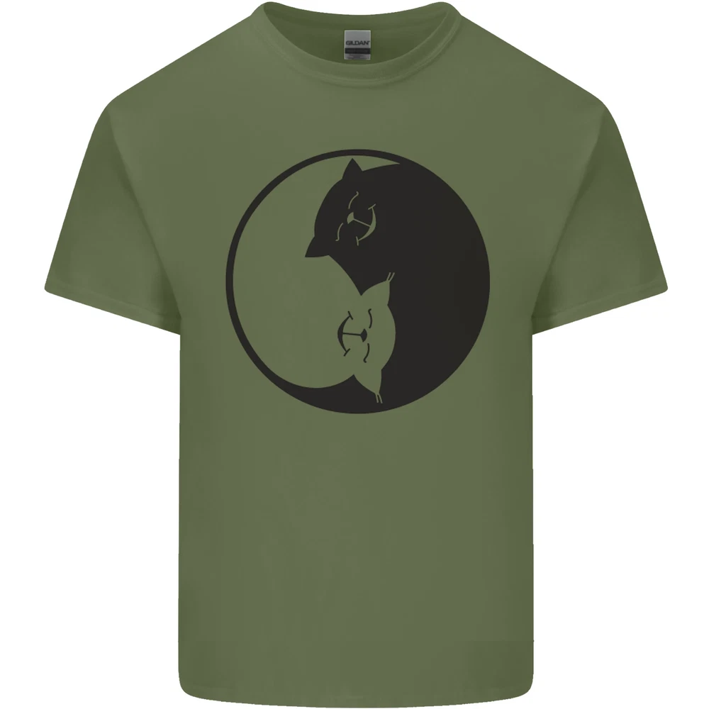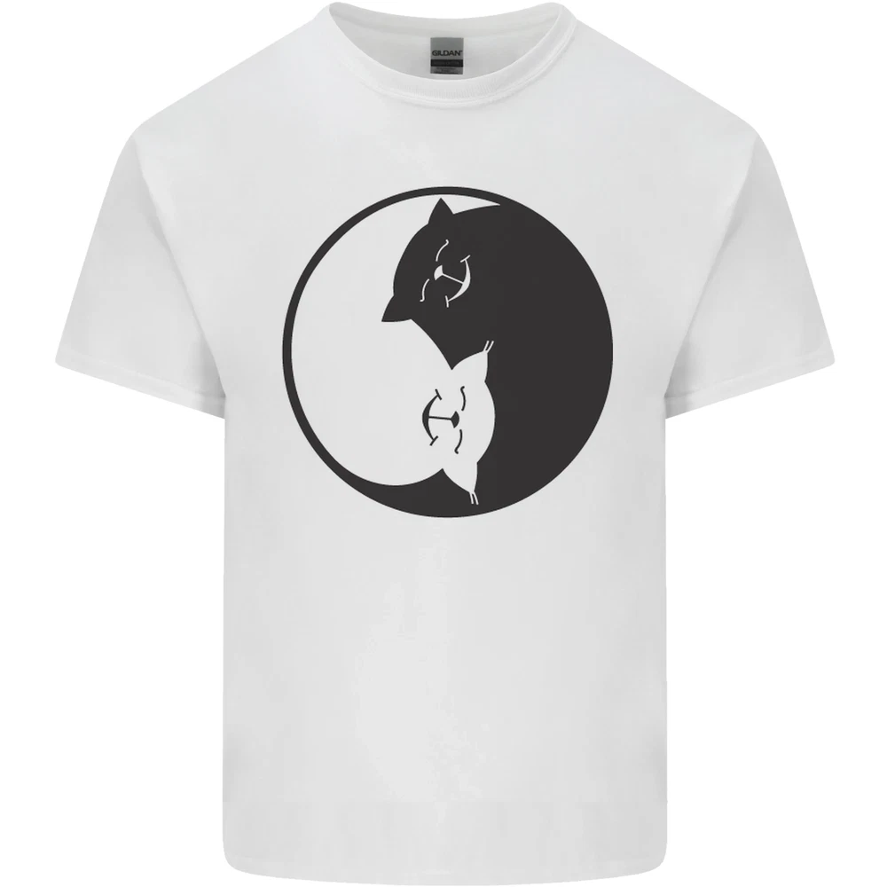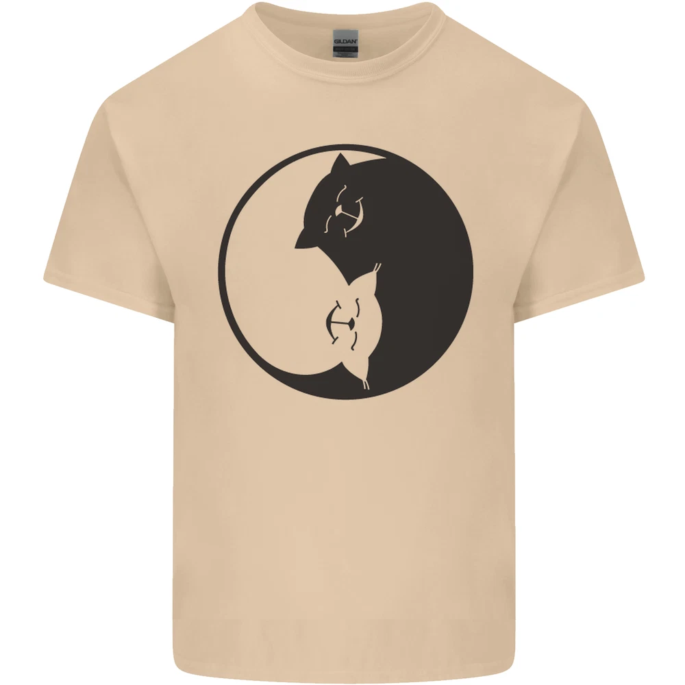 Yin Yang Cat Lover Funny Kitten Pet Mens Cotton T-Shirt Tee Top
