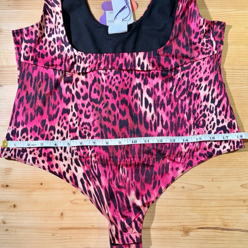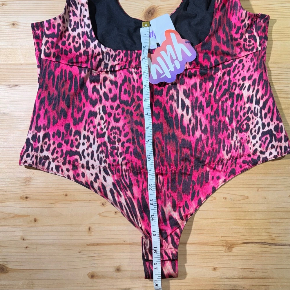Headliner Shaping Open Bust Thong Bodysuit, a statement piece designed to sculpt and flatter. This bodysuit features a bold animal print in vibrant pink hues, creating a striking and confident look. The open bust design allows for customizable support with your favorite bra, while the shaping construction provides a smooth and streamlined silhouette. The thong cut ensures a seamless fit under clothing, making it perfect for any occasion. Keywords: Yitty, Bodysuit, Shapewear, Open Bust, Thong Bodysuit, Animal Print, Pink Bodysuit, Plus Size, 2X, Headliner Shaping, Party, Night Out, Sexy, Contemporary, y2k All items come from a clean, pet free/smoke-free home and are carefully packed for shipping. Send me an offer or Bundle & save.Let's make a deal!