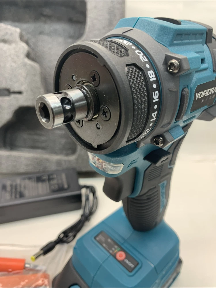 The Yofidra 10mm 18 Volt Power Drill is a lightweight cordless drill with a brushless motor and two 18V Lithium-Ion batteries included for quick charging in just 1 hour. It has a 1/4 inch keyless chuck, operating at a speed of 3600 RPM, making it efficient for various drilling and screwdriving tasks. The set includes a battery charger, extension rod, socket connector, drill bits, screwdriver bits, and other attachments, providing versatility for different projects. With a 1-year manufacturer warranty, this blue drill from Yofidra is a reliable choice for DIY enthusiasts and professionals alike. Sorry no case. Will ship out next day after full payment. PayPal please.