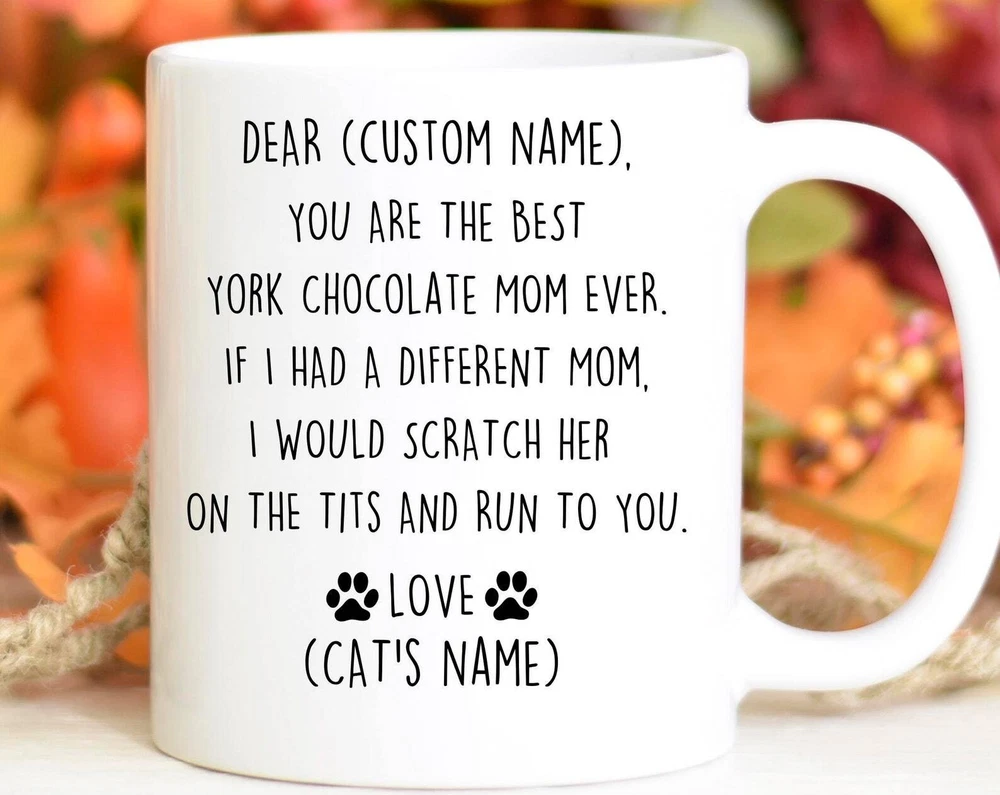 York Chocolate Mom Birthday Gift York Chocolate Mom Christmas Gift York Cat Mom Valentine New York Cat Mom Mug York Cat Mom Appreciation Product Details.. This high quality 11oz. ceramic white mug has a premium hard coat that provides crisp and vibrant color reproduction sure to last for years. Perfect for all hot & cold beverages. The highest quality printing possible is used. It will never fade no matter how many times you wash it. Material: 100% Ceramic. Print both sides. Dishwasher and Microwave Safe. High Gloss + Premium White Finish. Printed in the U.S.A. Personalized & Custom. We support personalized and custom mug to add custom, when placing an order, you can add notes to the "order note" in shipping address section. Also you can contact us directly via message. Shipping Info. Ready to ship in 1 to 2 business days, All products are made-to-order and proudly printed in the United States. Shipped by USPS and DHL, You will receive your order in 5-7 days. Replace & Refund. All products are defective during shipping broken, chipped will be replaced free of charge. You are not satisfied with the product, we will refund 100% money to you. If any other issues arise, please do not hesitate to message, we would be more than happy to assist you.