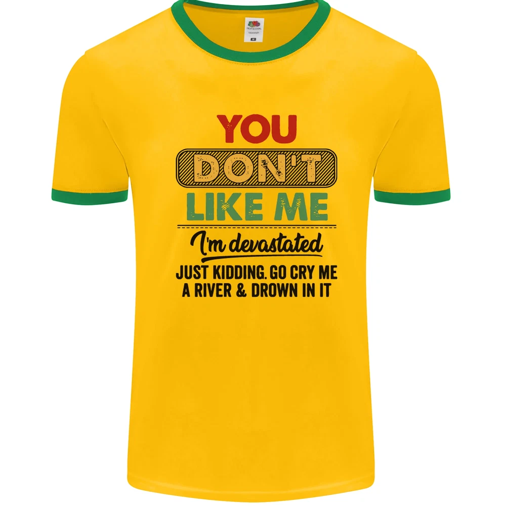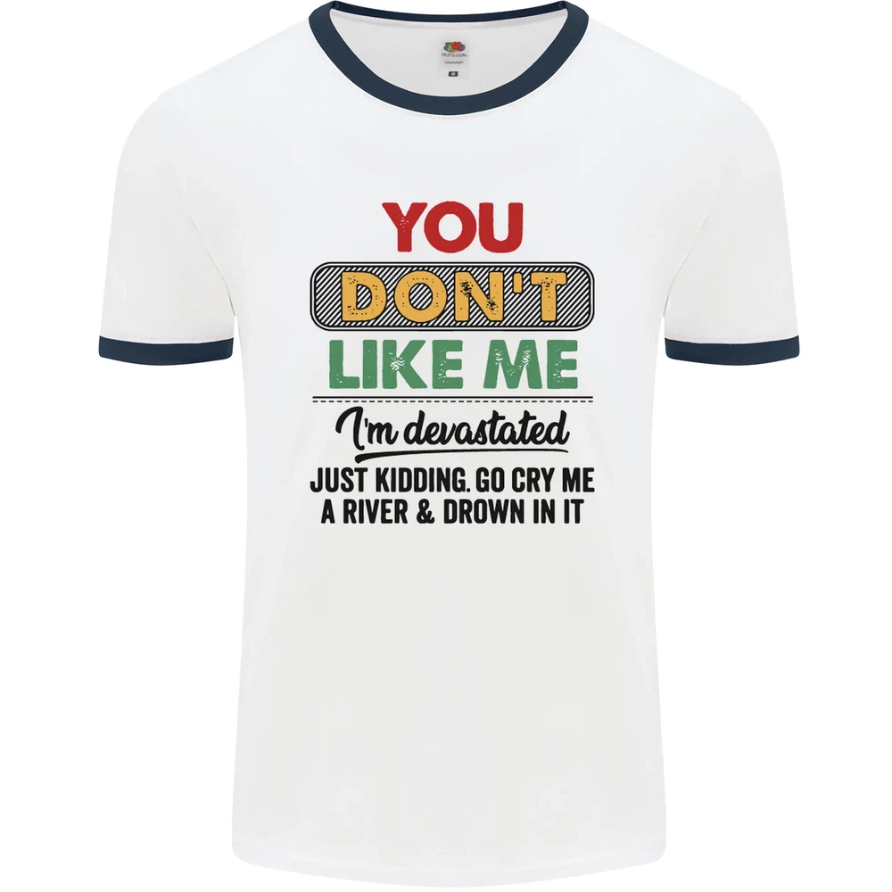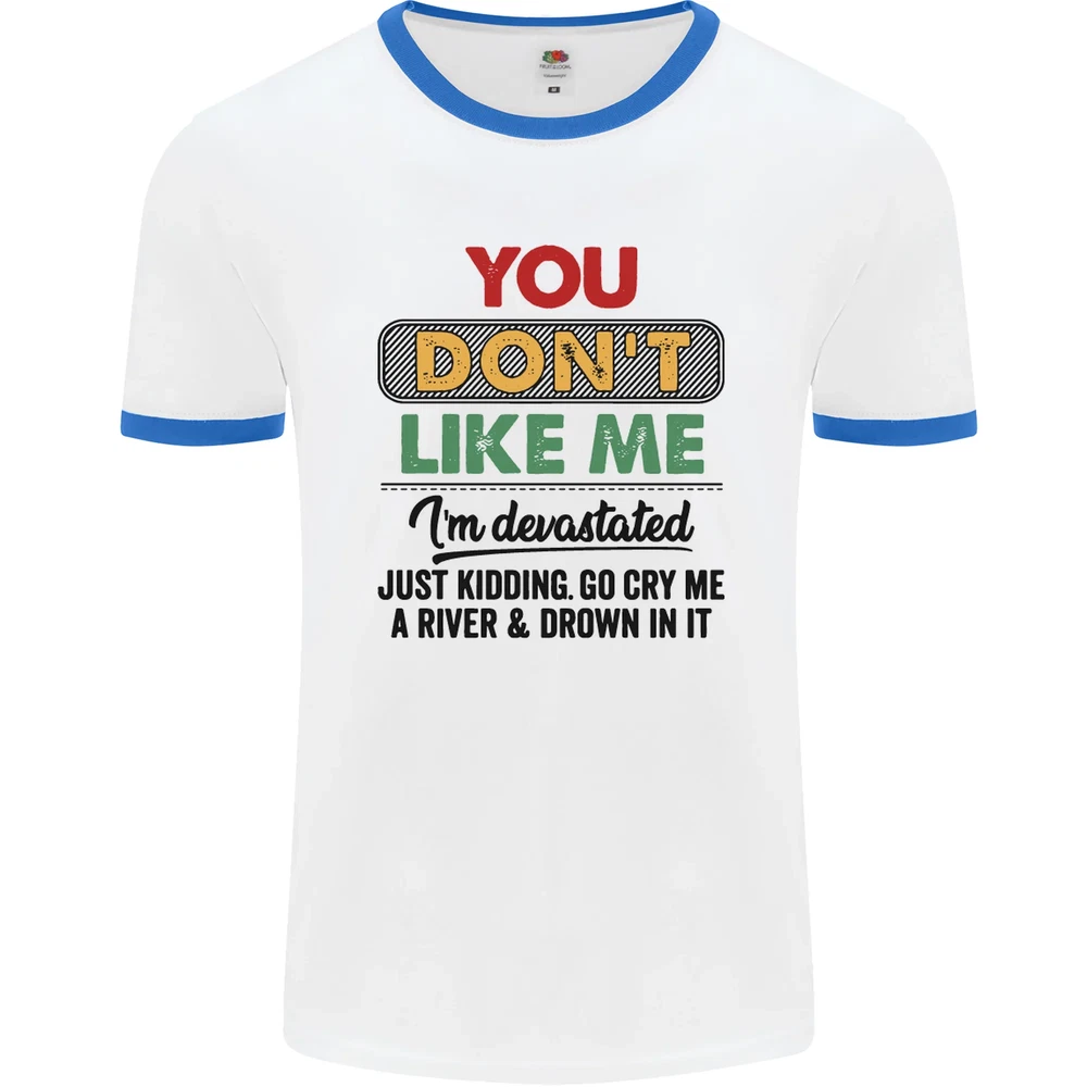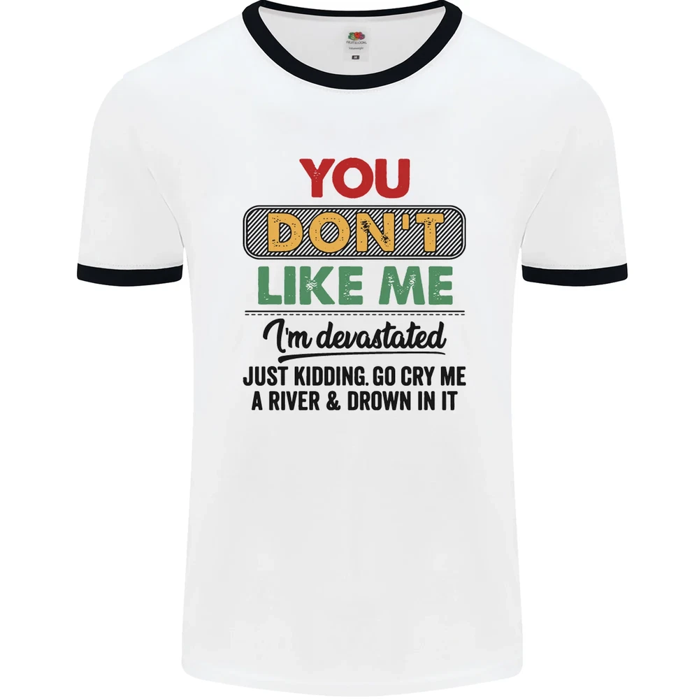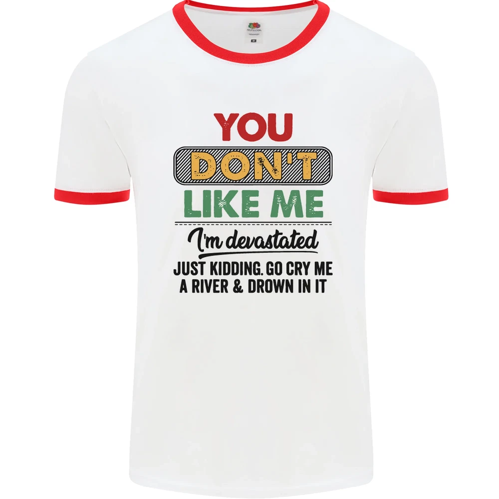 You Dont Like Me Funny Sarcastic Slogan Mens Ringer T-Shirt None Training shoe with low-to-the-ground feel. Upper: Welded-TPU support overlays in the heel, toe cap and quarter. Dual mesh provides closed mesh in the lower quarter and breathable mesh throughout. Texture screened toe cap for protection. Description & Size Chart Long Sleeve Baseball, Short Sleeve Baseball & Ringer T-Shirts Brand: Fruit of the Loom FotL These styles feature a bound neckline which which has a 1x1 Lycra rib contrast collar and contrast sleeves for a fashionable appearance. Fine knit gauge for high resolution printing. Twin needle stiching detail on neck, sleeves and hem. Fabric: 100% cotton Belcoro Yarn Weight: 160 gsm Printed with eco-friendly inks, which are safe to the skin and children. Alternative Styles This design (where appropriate), and many more like it, are available on the following styles: Best Selling Collections On the Darkside Birthdays Pets \ Animals Gym & Fitness Father's Day Sport Funny Biker Special Occasions Martial Arts LGBT Christmas Shipping All orders are shipped within one working day. Due to circumstances out or our control, or busy times of the year, this could be extended to two working days. Returns Returns are accepted within 60 days of delivery providing that the item is returned in the original condition and all tags are intact (where applicable) and has not been worn. Please ensure that the item is returned clean and free of pet hair. To return an item please use eBay's return system, which can be located by finding your order in your account and selecting the return option. eBay integration by