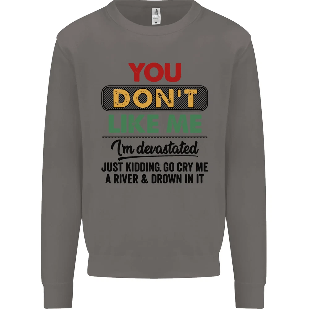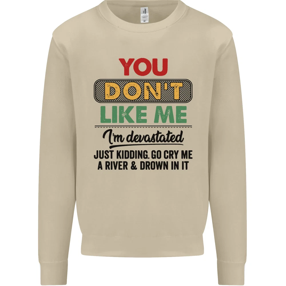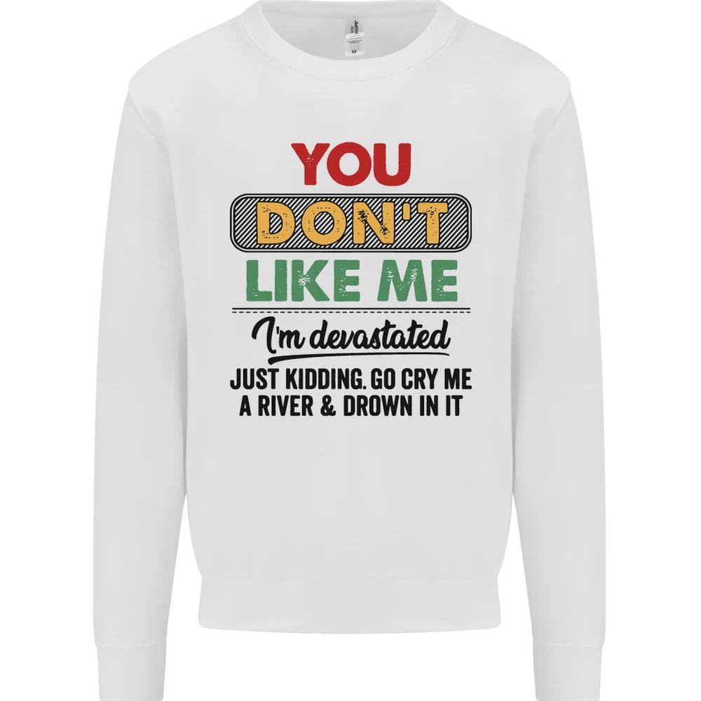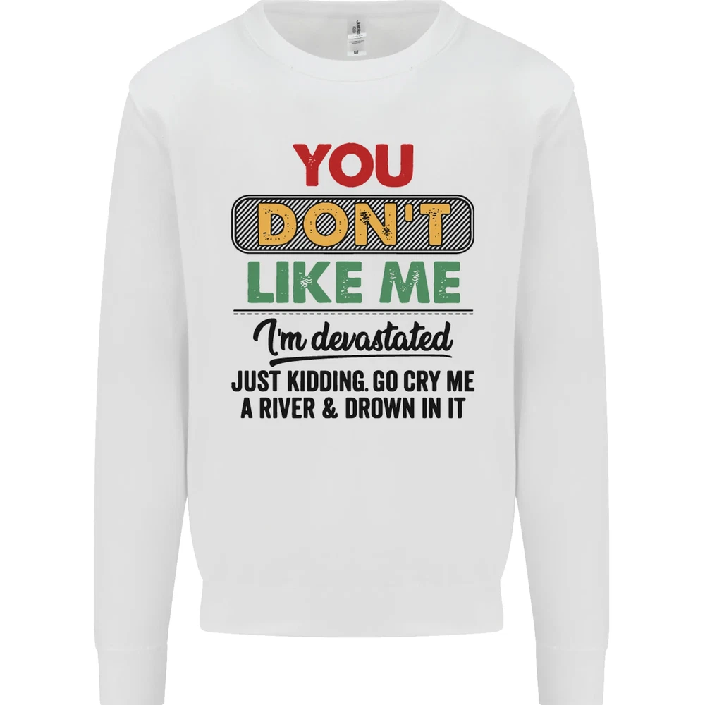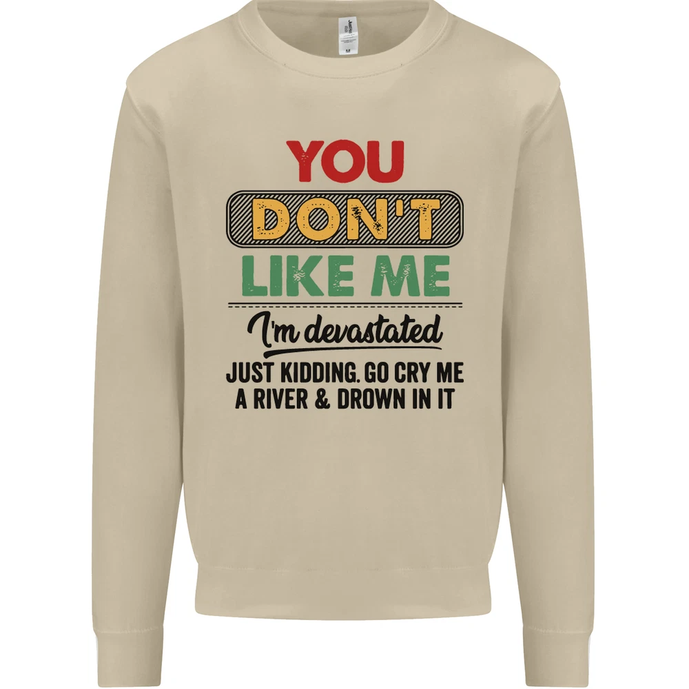 You Dont Like Me Funny Sarcastic Slogan Mens Sweatshirt Jumper Sizes: S 36" M 40" L 44" XL 48" 2XL 52" 3XL 56" 4XL 60" 5XL 64" Professionally printed onto an adults AWDis Sweatshirt (Sweat) JH030N 280gsm Unisex Twin needle stitching detailing Ribbed cuff and hem Soft cotton faced fabric creates ideal printing surface Printed with eco-friendly inks that are safe to the skin and children Worldwide Responsible Accredited Production (WRAP) certified production Training shoe with low-to-the-ground feel. Upper: Welded-TPU support overlays in the heel, toe cap and quarter. Dual mesh provides closed mesh in the lower quarter and breathable mesh throughout. Texture screened toe cap for protection. Description & Size Chart Adults AWDis Sweatshirt (Sweat) JH030 280gsm Unisex Twin needle stitching detailing Ribbed cuff and hem Soft cotton faced fabric creates ideal printing surface Worldwide Responsible Accredited Production (WRAP) certified production Printed with eco-friendly ink, which are safe to the skin and children. Alternative Styles This design (where appropriate), and many more like it, are available on the following styles: Best Selling Collections On the Darkside Birthdays Pets \ Animals Gym & Fitness Father's Day Sport Funny Biker Special Occasions Martial Arts LGBT Christmas Shipping All orders are shipped within one working day. Due to circumstances out or our control, or busy times of the year, this could be extended to two working days. Returns Returns are accepted within 60 days of delivery providing that the item is returned in the original condition and all tags are intact (where applicable) and has not been worn. Please ensure that the item is returned clean and free of pet hair. To return an item please use eBay's return system, which can be located by finding your order in your account and selecting the return option. eBay integration by