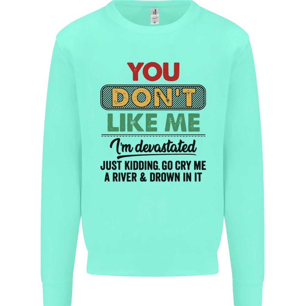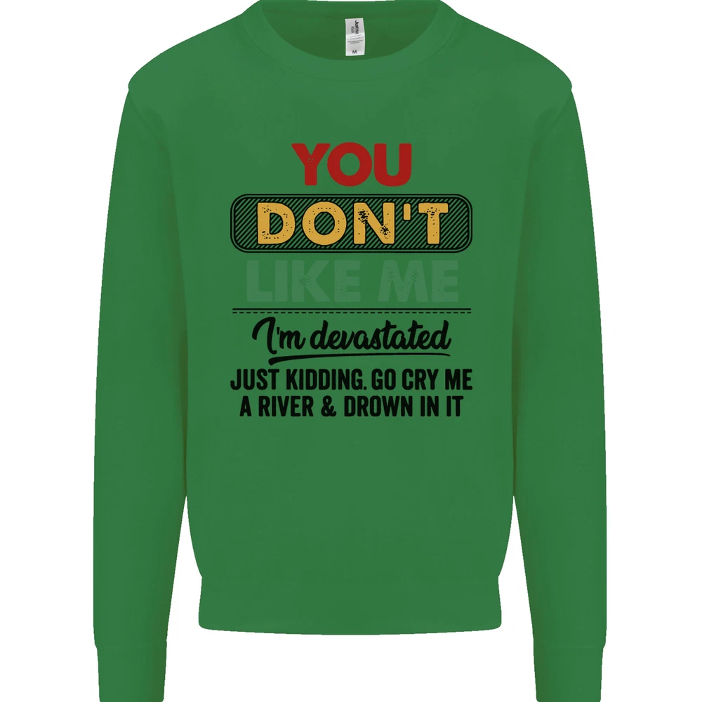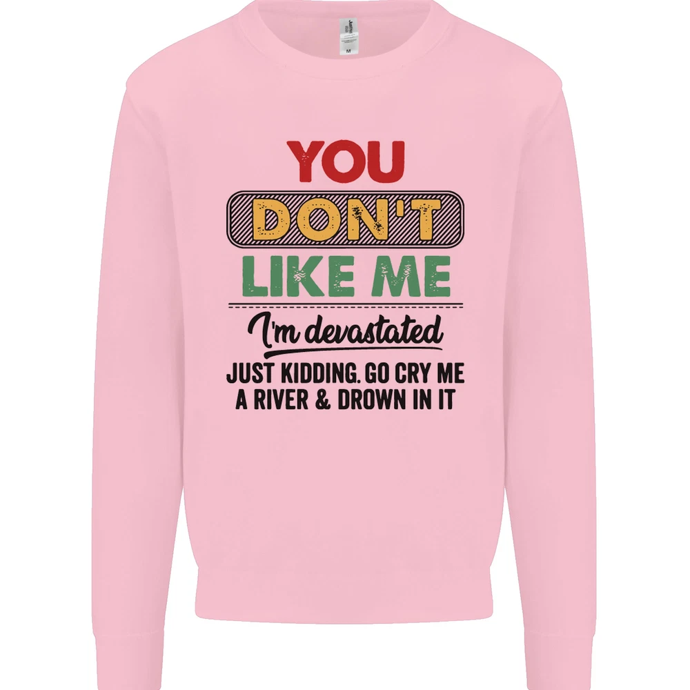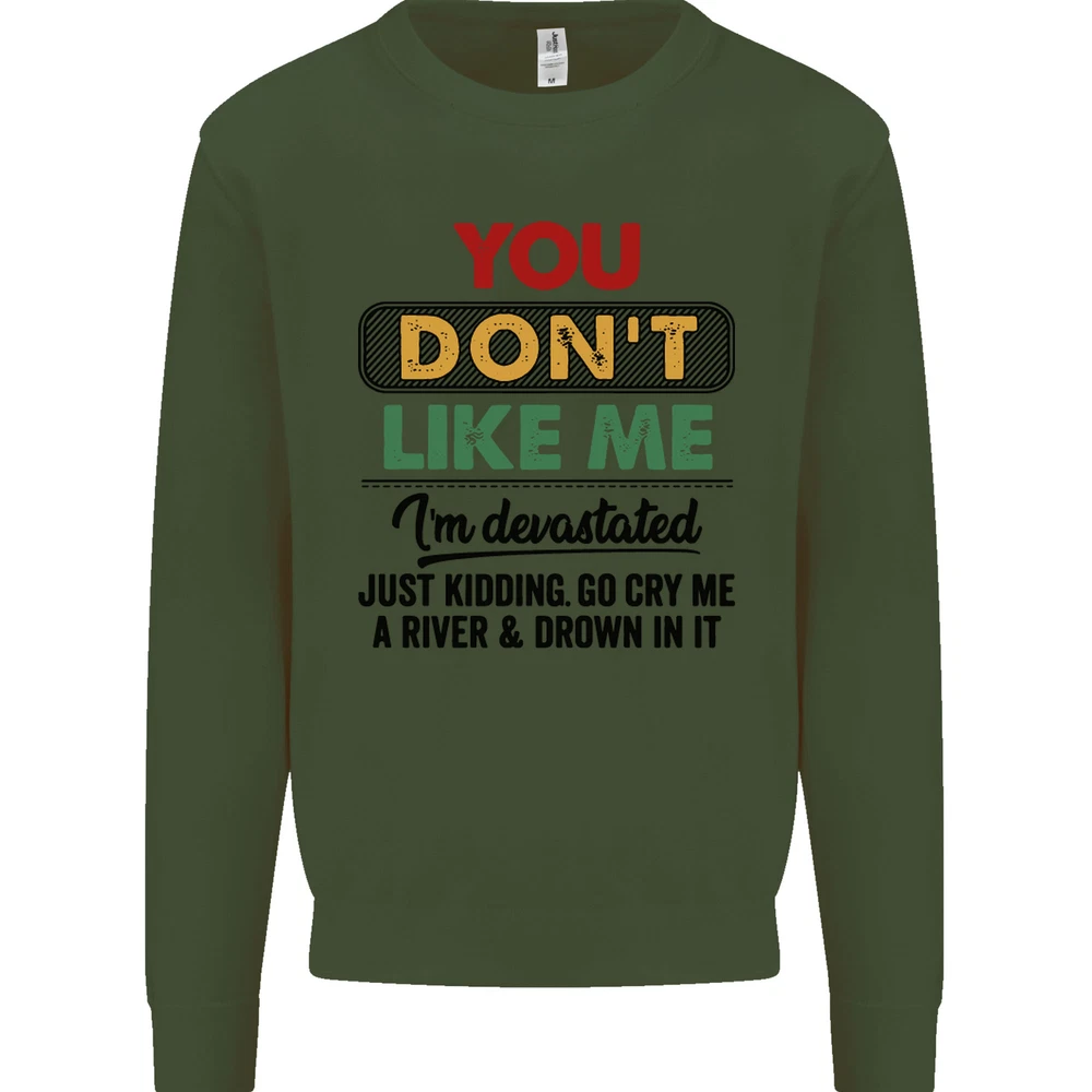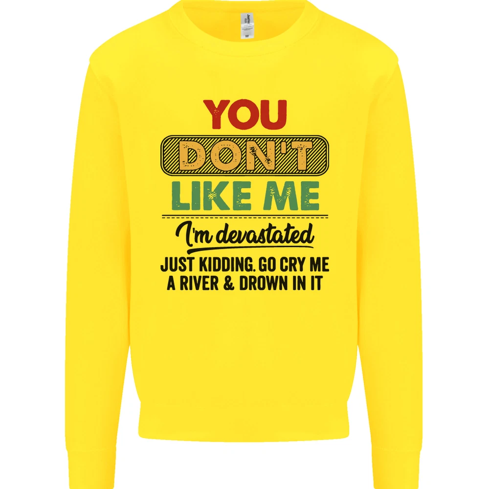 You Dont Like Me Funny Sarcastic Slogan Mens Sweatshirt Jumper Sizes: S 36" M 40" L 44" XL 48" 2XL 52" 3XL 56" 4XL 60" 5XL 64" Professionally printed onto an adults AWDis Sweatshirt (Sweat) JH030N 280gsm Unisex Twin needle stitching detailing Ribbed cuff and hem Soft cotton faced fabric creates ideal printing surface Printed with eco-friendly inks that are safe to the skin and children Worldwide Responsible Accredited Production (WRAP) certified production Training shoe with low-to-the-ground feel. Upper: Welded-TPU support overlays in the heel, toe cap and quarter. Dual mesh provides closed mesh in the lower quarter and breathable mesh throughout. Texture screened toe cap for protection. Description & Size Chart Adults AWDis Sweatshirt (Sweat) JH030 280gsm Unisex Twin needle stitching detailing Ribbed cuff and hem Soft cotton faced fabric creates ideal printing surface Worldwide Responsible Accredited Production (WRAP) certified production Printed with eco-friendly ink, which are safe to the skin and children. Alternative Styles This design (where appropriate), and many more like it, are available on the following styles: Best Selling Collections On the Darkside Birthdays Pets \ Animals Gym & Fitness Father's Day Sport Funny Biker Special Occasions Martial Arts LGBT Christmas Shipping All orders are shipped within one working day. Due to circumstances out or our control, or busy times of the year, this could be extended to two working days. Returns Returns are accepted within 60 days of delivery providing that the item is returned in the original condition and all tags are intact (where applicable) and has not been worn. Please ensure that the item is returned clean and free of pet hair. To return an item please use eBay's return system, which can be located by finding your order in your account and selecting the return option. eBay integration by