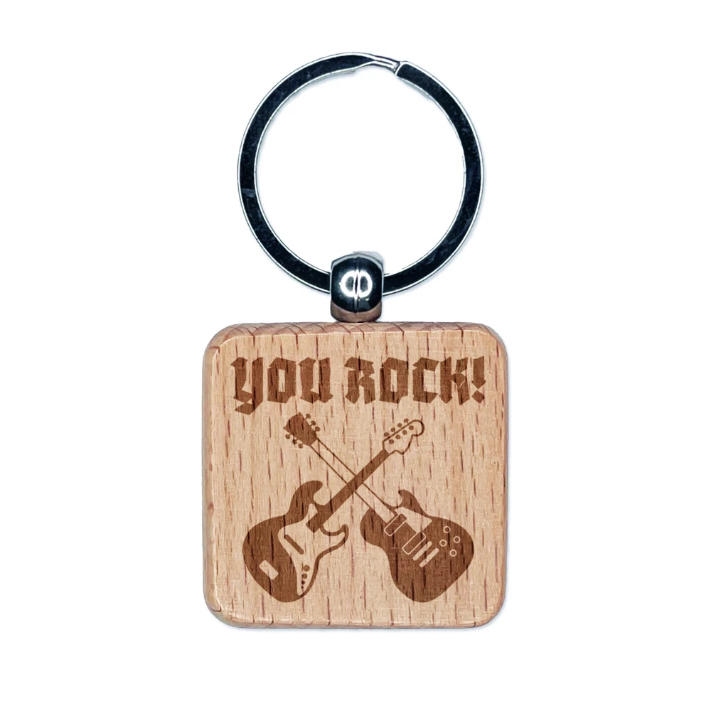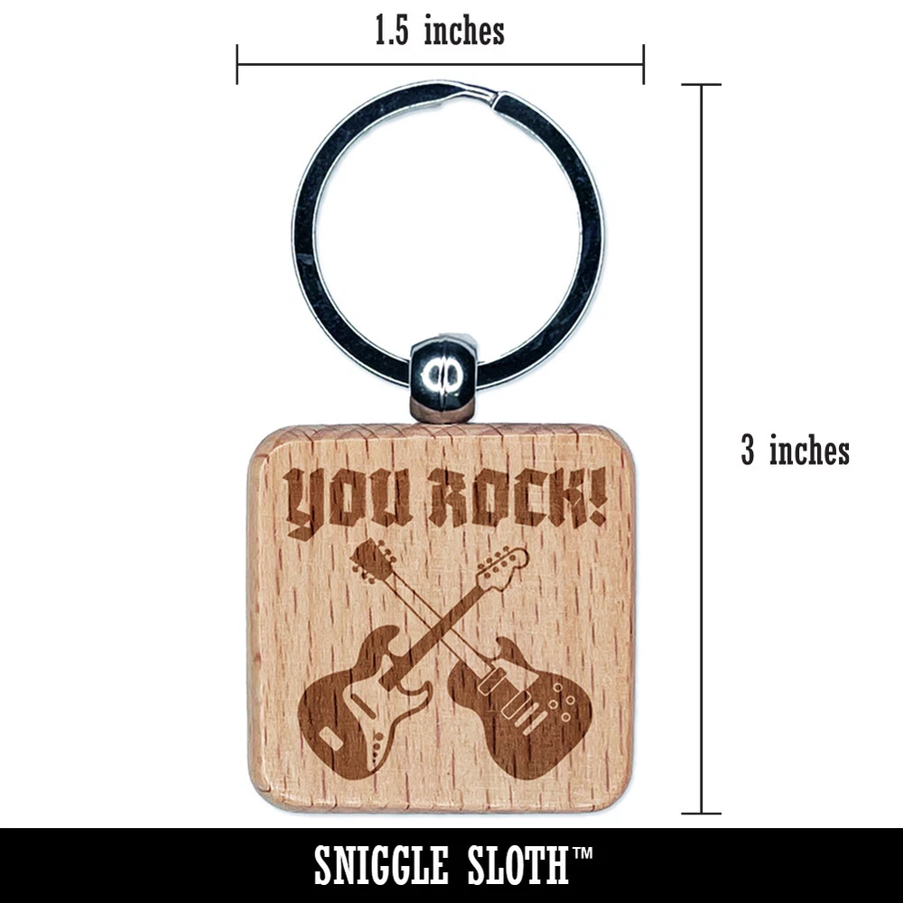 You Rock Electric Guitars Engraved Wood Square Keychain Tag Charm